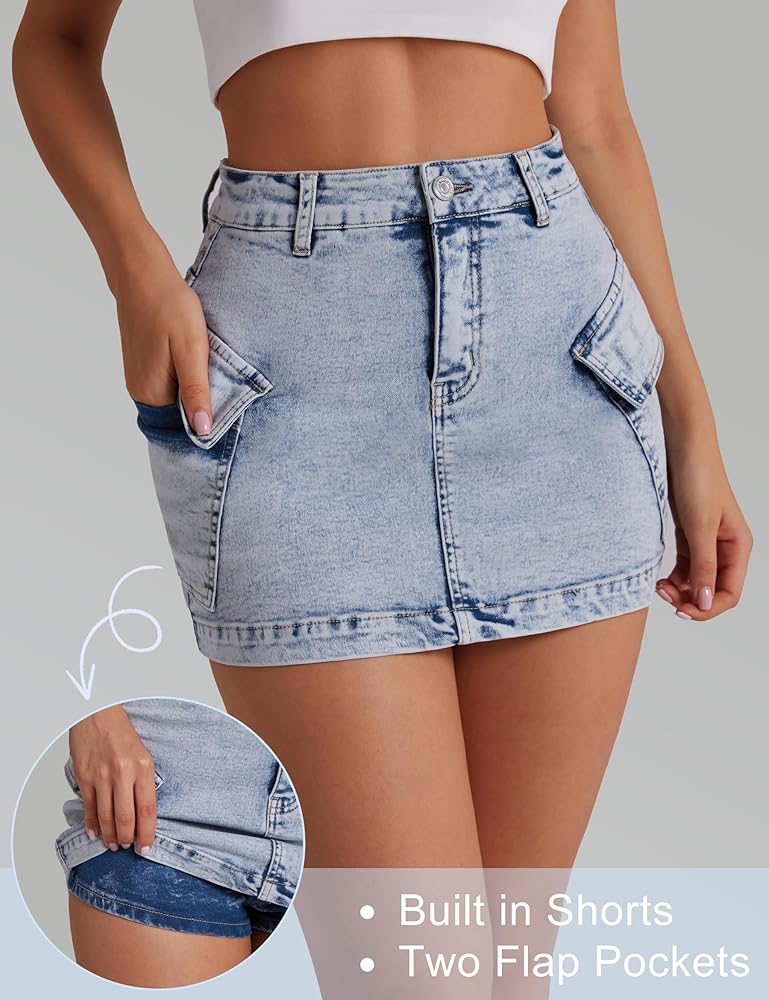 【Denim Skirt with Shorts Underneath】The unique inner lining shorts design completely solves the embarrassment of short skirts being easily exposed! The tight fitting without tightness cut allows you to run and walk freely without pressure, making it more comfortable than regular jean skirt.