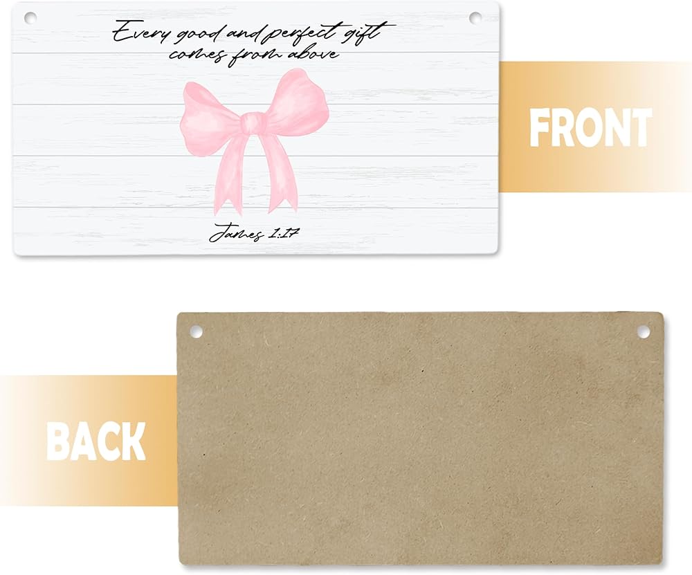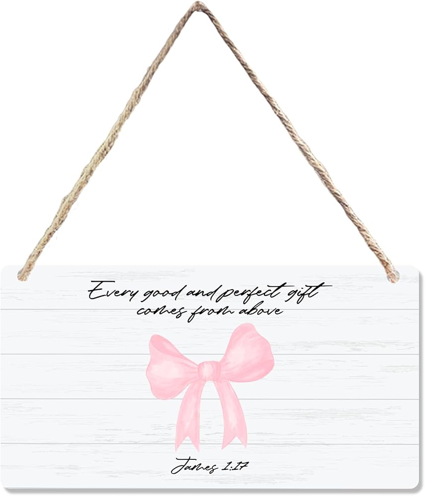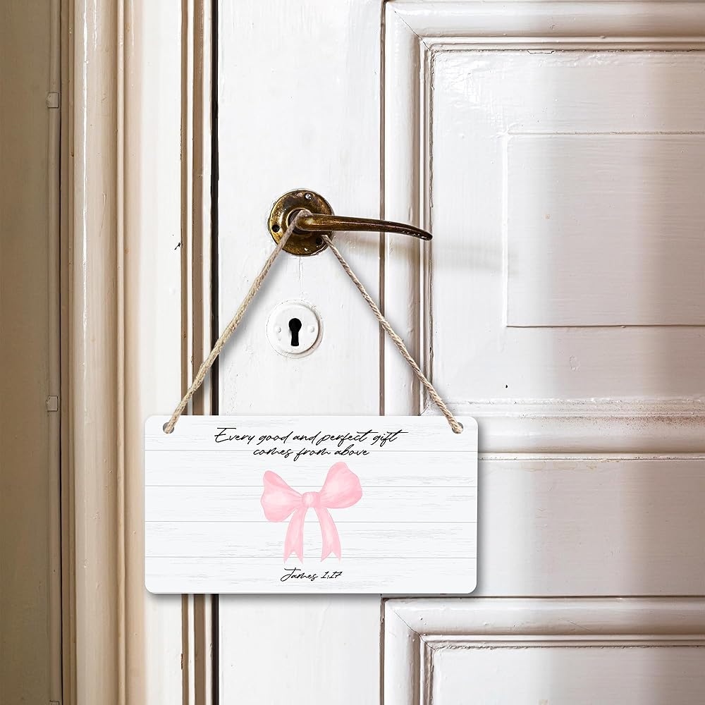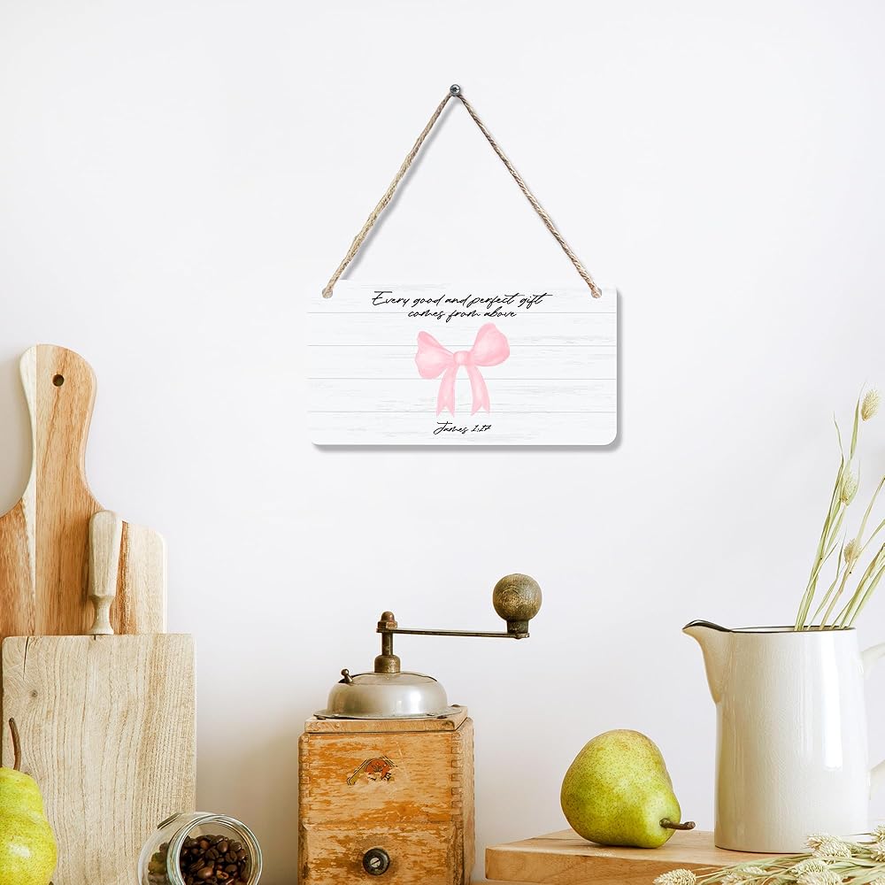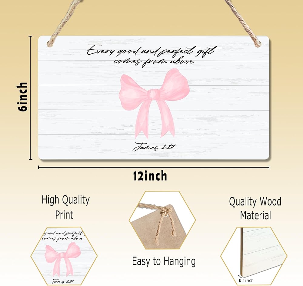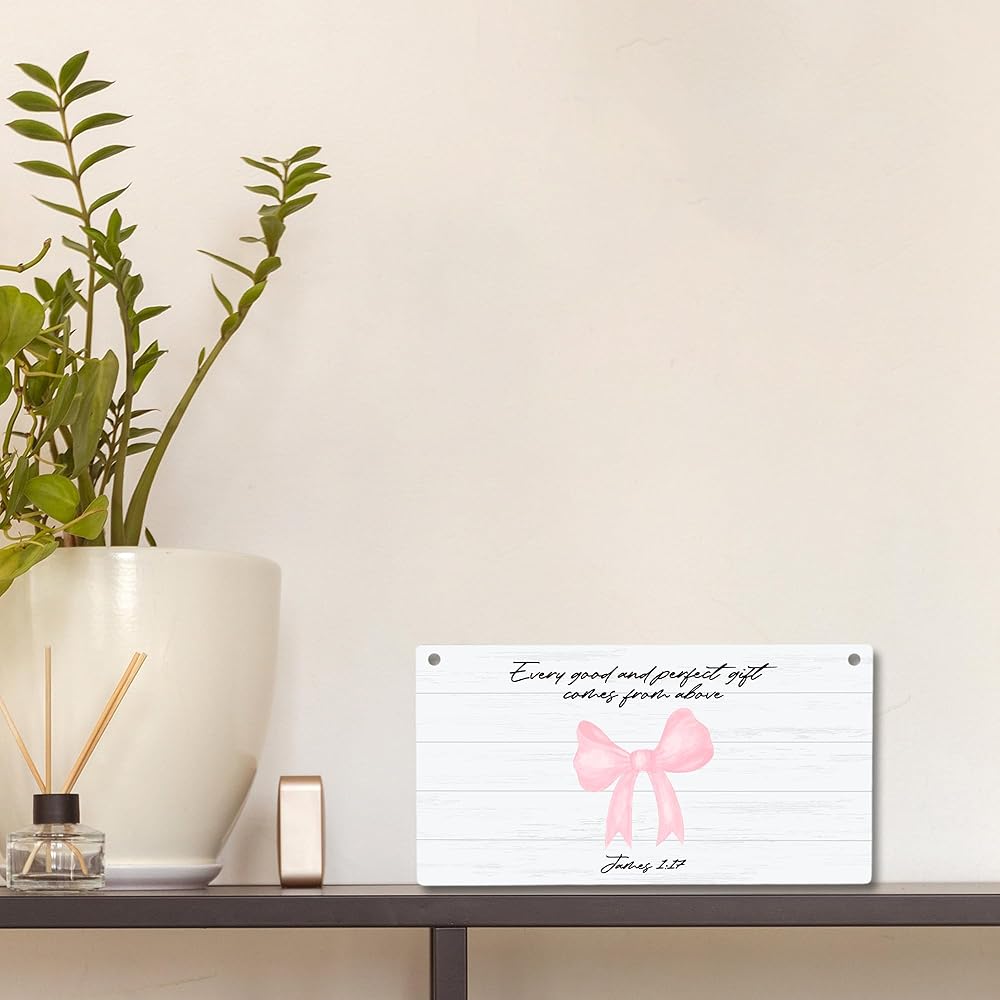 CGBHW Pink Bow Christian Wooden Sign, Scripture Bible Verses Coquette Aesthetic Girly Hanging Sign Wall Decor, Bow Christian Wall Decor for Girls Bedroom Living Room Dorm Door Decor 12 x 6 Inch