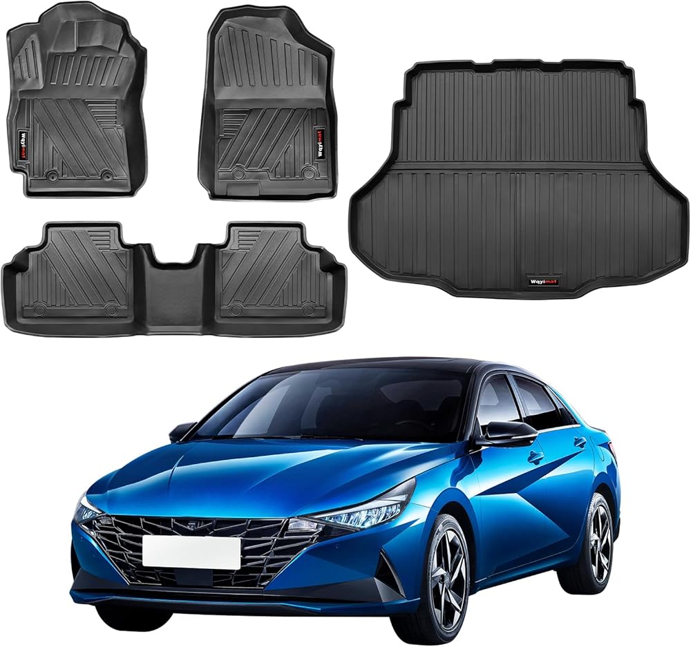 Custom Fit Floor Mats and Cargo Liner Full Set for 2021 2022 2023 2024 2025 2026 Hyundai Elantra & Elantra N Accessories All Weather Protection TPE (Floor Mats+Cargo Liner)