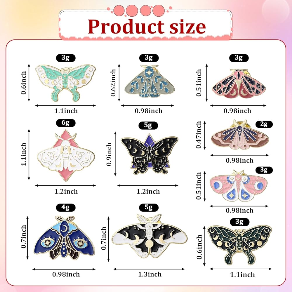 10 Pcs Butterfly Enamel Pin Cute Alloy Brooch Cool Metal Lapel Pins Funny Decoration Badge Clips for Backpacks Clothes Jackets Bags Hat Christmas Valentine's Day Steampunk Jewelry