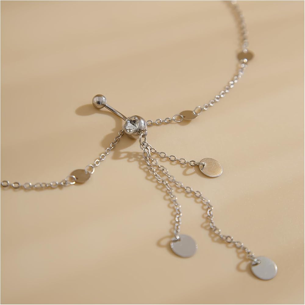 Crystal dangle belly button chain waist chain size is suitable for most people. Belly chain design simple, will make you more elegant.