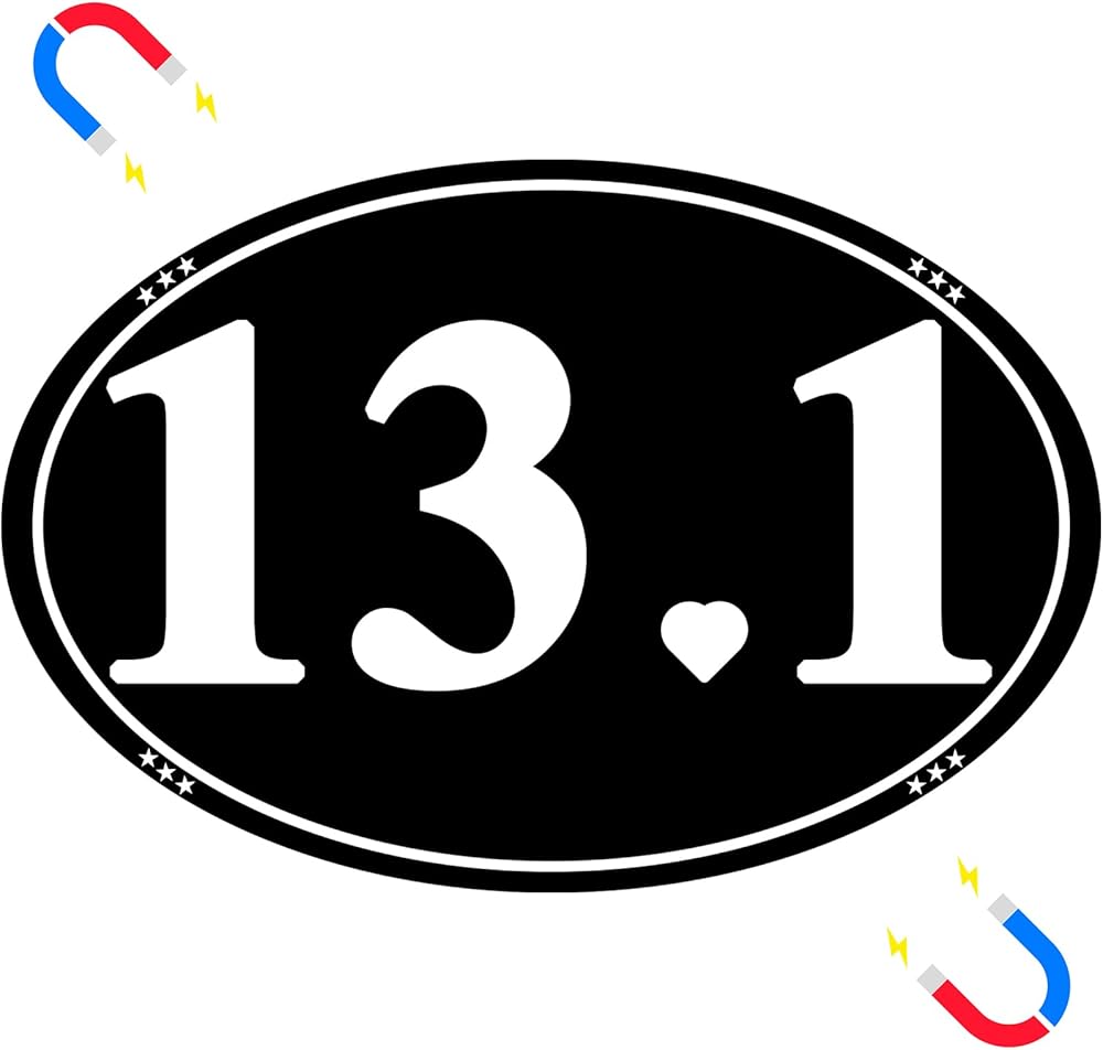 13.1 Car Magnet Sticker for Half Marathon Runners, Reflective Magnetic Sign for Vehicles Badge of Honor Running Pride Gift 5.9 Inch x 3.9 Inch(1 Pack - Black)