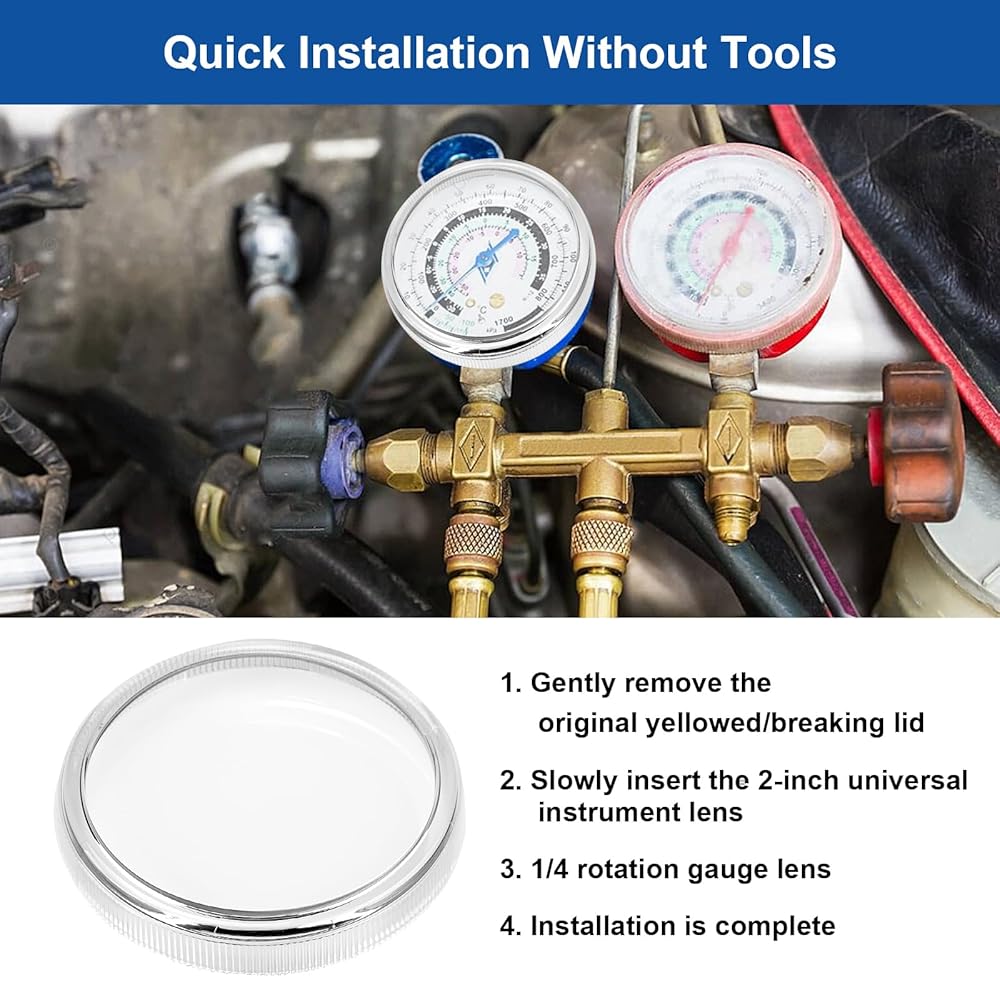 - 2-Inch Diameter Universal Fit – Gauges lens cover compatible with gauges designed for 1/4-turn twist-lock lenses (excludes threaded models).