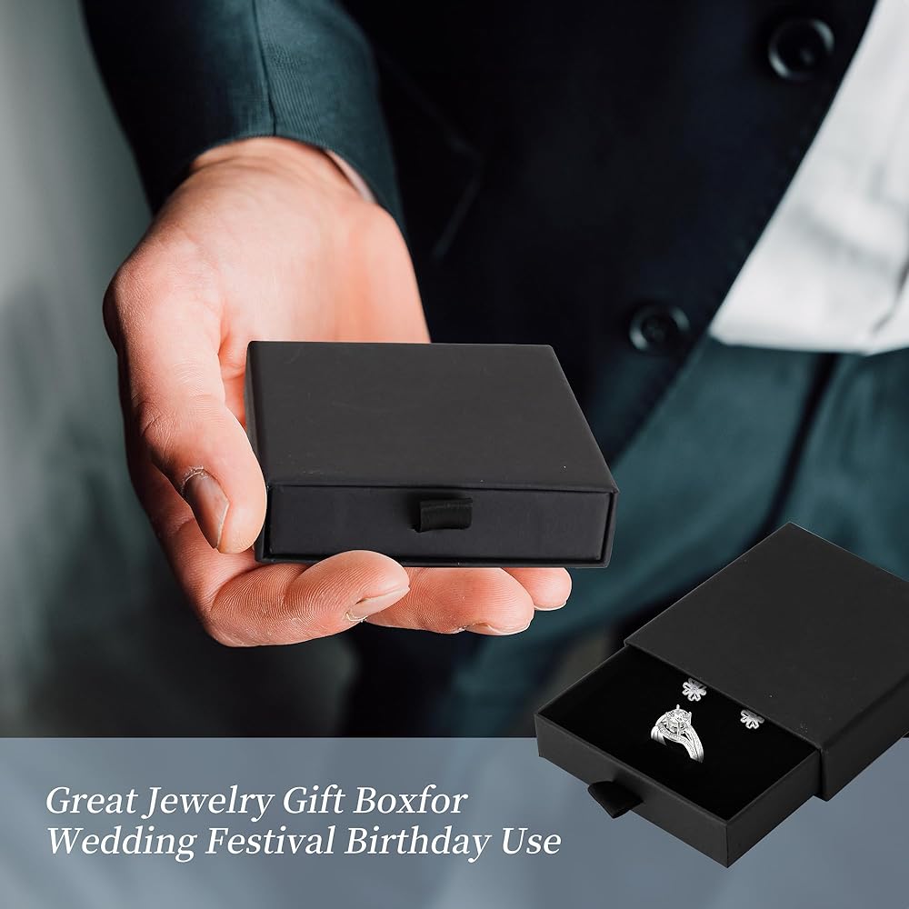 White Jewelry Gift Box Size: Small gift boxes size is 3.54 × 3.54 × 1 inchs, the inner liner size is 3.2×3.2×0.75inch, which is the ideal box for storing necklaces, rings, earrings, can also be used as Father's Day, Valentine's Day, Mother's Day, Thanksgiving or Christmas gift box.