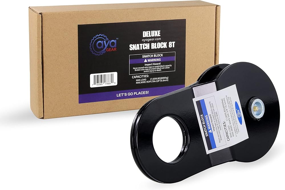 🚙STEEL SNATCH BLOCK FOR SUPERIOR PULLING CAPACITY:AYA Gear snatch block made of heavy duty steel and anti-corrosion coatings.Max load at 8 Ton (17,600LBS) .You will be able to easily unstuck your car from any situation.