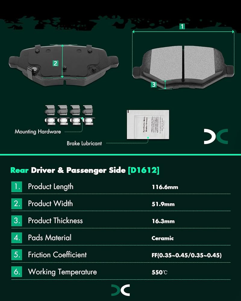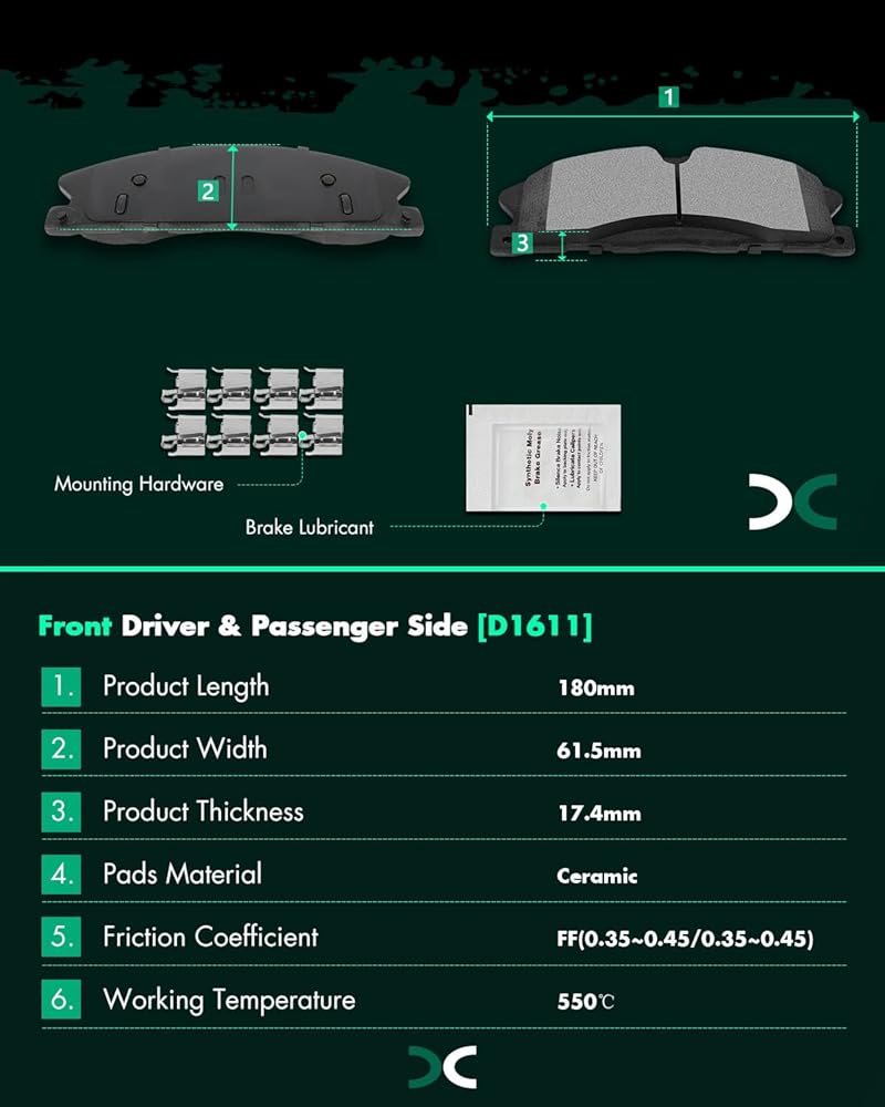 COMPATIBLE VEHICLES - 2003-2006 for Dodge for Durango,2002-2005 for Dodge for Ram 1500 Ceramic Disc Brake Pad Kit for D966-7774 D967-7869