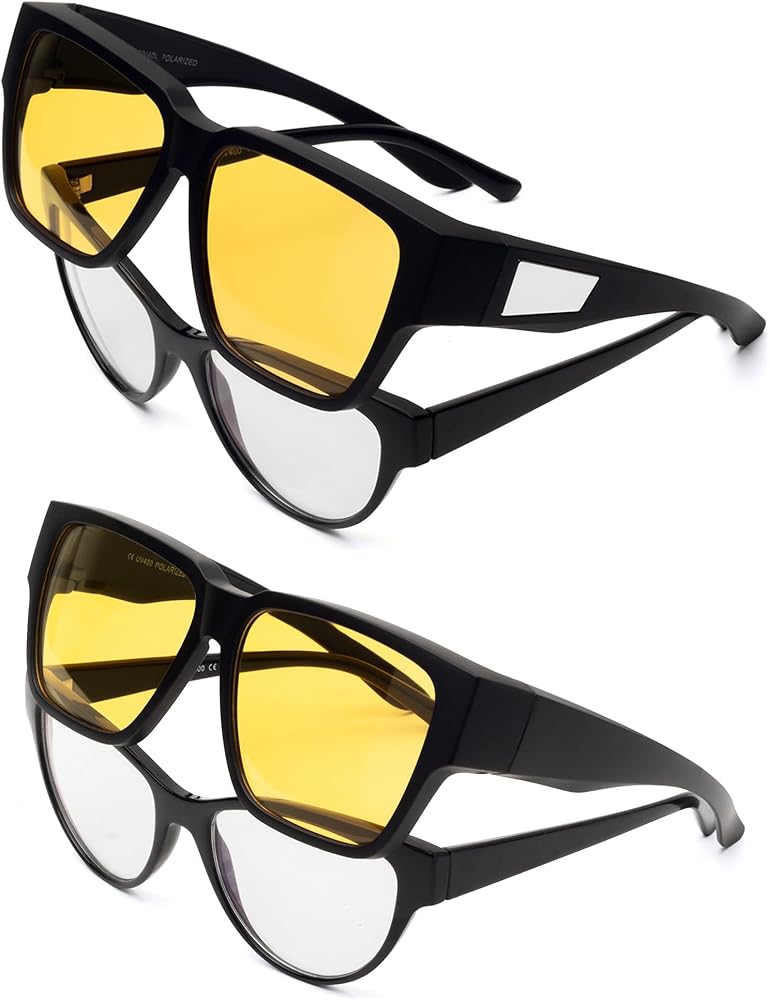 【Ultra Light & Comfortable】: Comfortable to wear with these fit over sunglasses because they are ultra-light that you barely feel burdened when wearing them over the regular glasses, very convenient to wear and take off with one hand when you are driving. Sturdy internal hinge structure, comfortable recessed nose pads, ergonomic temple end-tips, all details ensure perfect performance