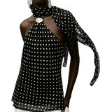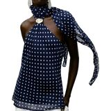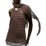 Material: Polyester blend. Polka dot halter tank top, sexy v neck cami scarf top, made with sheer mesh fabric, skin friendly, lightweight, breathable, smooth to touch and comfortable to wear.