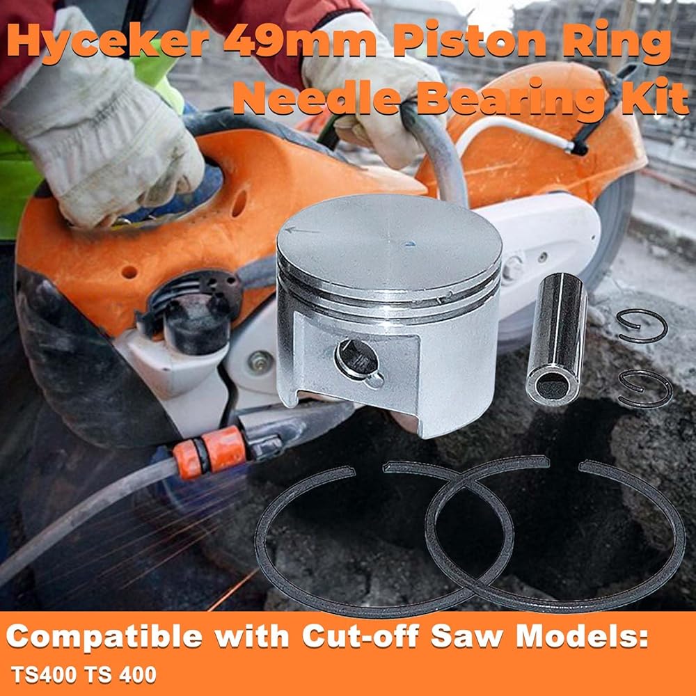 Hyceker TS400 49mm Piston Rings Kit for Stihl TS400 Concrete Cut Off Saw, For Stihl TS400 Concrete Saw Piston Kit, TS 400 Piston Ring Set with Oil Seals Needle Bearing Part 1127-034-3006 4223-030-2000