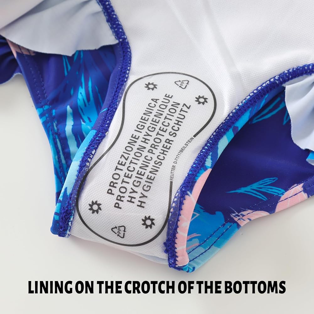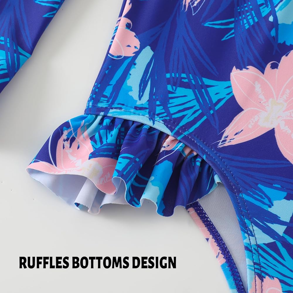 FASHION DESIGN: Kids girl bathing suits with beautiful colors and cute prints for girls, long sleeve rash guard swimsuit with zipper making it easy to wear, The bottoms also have ruffles, make your baby even more stylish and cute on the beach.