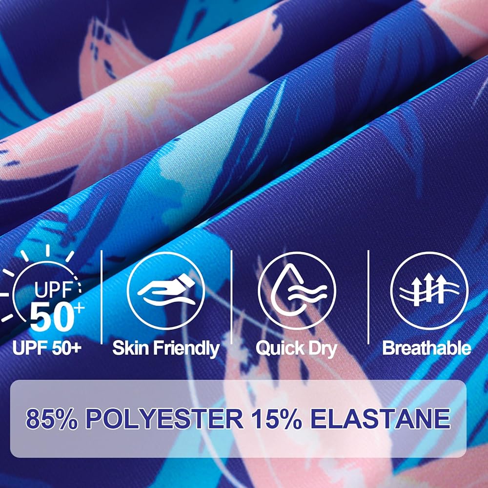 MATERIAL: Girls one piece swimsuit made of polyester and spandex, comfortable, quick-drying, elastic, lightweight and easy to clean. Our one piece rash guard swimsuit Our one-piece swimsuits give you a cool and silky touch, feel comfortable and stylish to wear, and will keep you cool all this summer