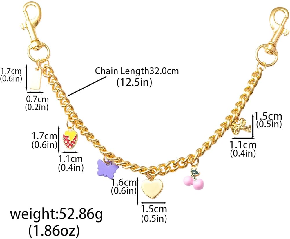 SUITABLE SIZE: The length of this gold bag charm chain is in 11.8 inch(30 cm), cherry dinosaur heart charms is about 0.6*0.6 inch(1.5*1.5 cm), the weight is 1.83 OZ/PC(51.8 g), making it perfect for daily wear