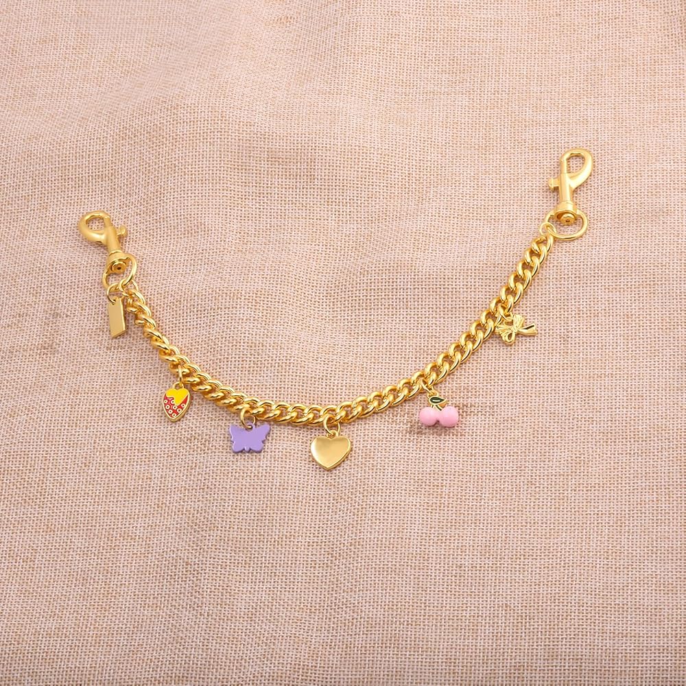 FASHION DESIGN: Those bag charm chains are decorated with cute dinosaur cherry heart flower butterfly strawberry pendant charms, add a playful pop of color to your accessories handbags, wallets, pants
