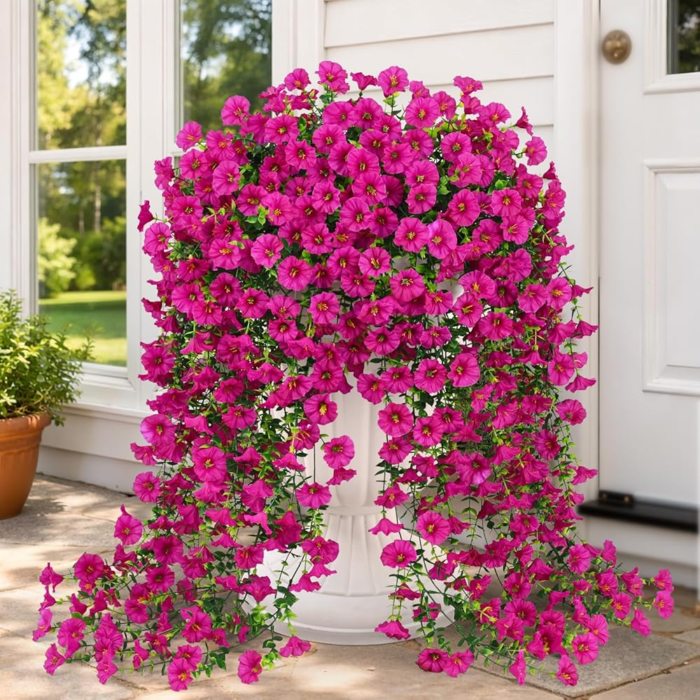 Maintenance-Free Versatility: Say goodbye to constant upkeep with flowers. Our artificial petunias for outdoors require no watering, pruning, or fertilizing, freeing up your time to enjoy the outdoors. Whether you're decorating a yard, balcony, patio, porch or garden, these artificial petunias for outdoors offer versatile decorating options that enhance the aesthetic appeal of any area while requiring minimal effort.