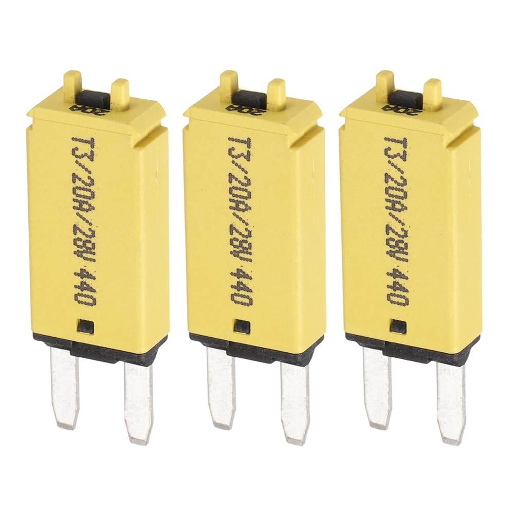 DMiotech 3 Pack 28V DC 20A Yellow ATC/ATO Manual Narrow Mini Resettable Fuse for Automotive Circuit Breaker Reset Fuses Low Profile Blade Fuses for Car Truck SUV Marine Boat Motorcycle