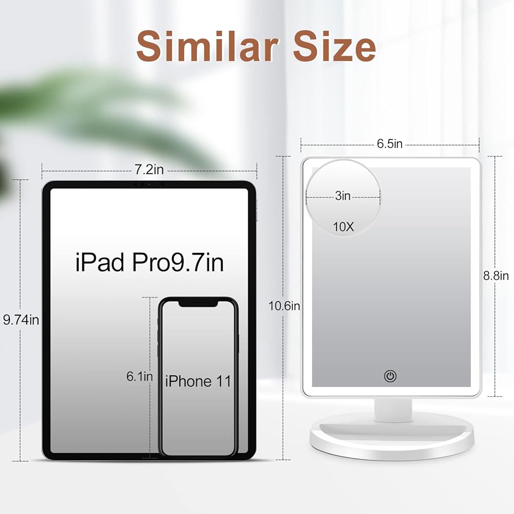 【180 Degree Rotation】This light up mirror stands on your countertop and can be adjusted. This is fixed at a perfect and comfortable viewing angle. It's an ideal present for mother, sister, wife, girlfriend, makeup artist, etc on Valentine's Day, Mother's Day, Christmas, anniversaries or other special occasions.