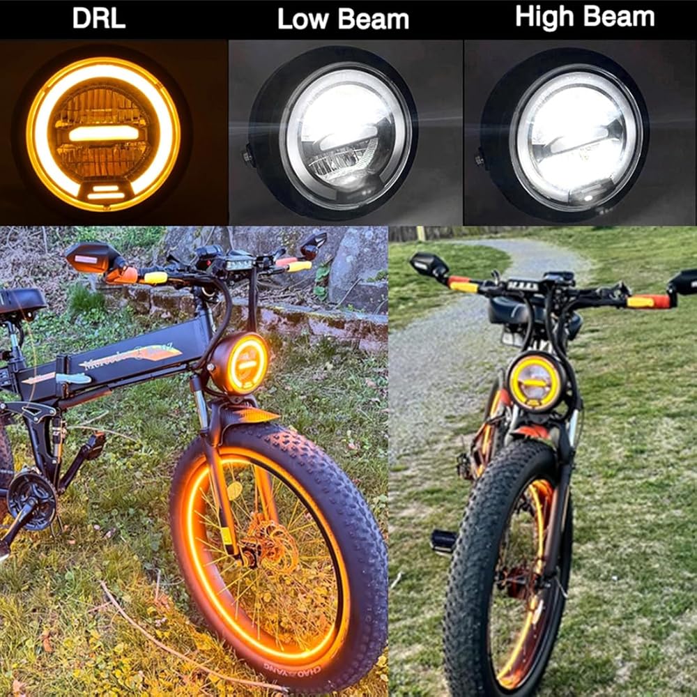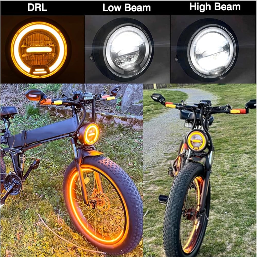 Four Lighting Modes:Cuhubyup 6.5 inch LED motorcycle headlight has 4 lighting modes, including 5000LM high beam, 2800LM low beam, and white(or yellow) daytime running lights.Brighter than halogen lamps and recessed headlamps