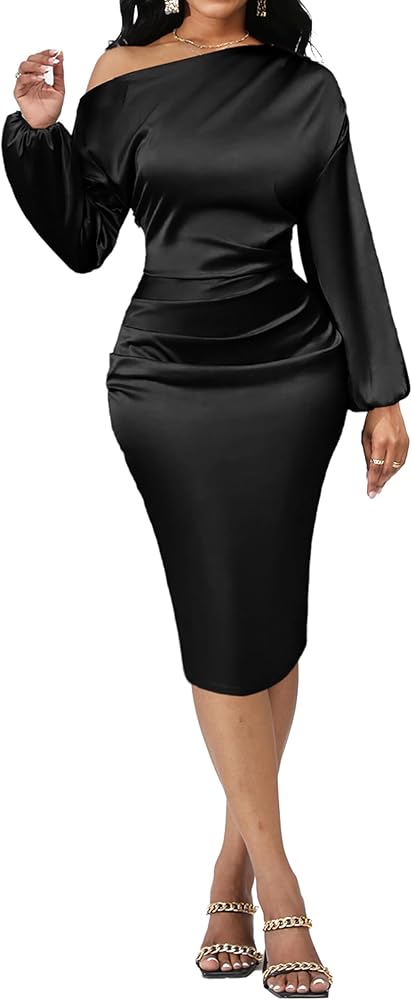 Feature: Womens Sexy Off Shoulder Elegant Dress, Off The Shoulder, Asymmetrical Sloping Shoulder, One Shoulder Midi Dresses, Boat Neckline, Long Sleeve,about calf or maxi length, Fitted Dress,Slim, Wrap Dress, solid color, and bodycon style, Sexy Party Bodycon Dresses, career dresses for women, spring,fall,winter wedding dress,, Work Office Business Pencil Dresses.
