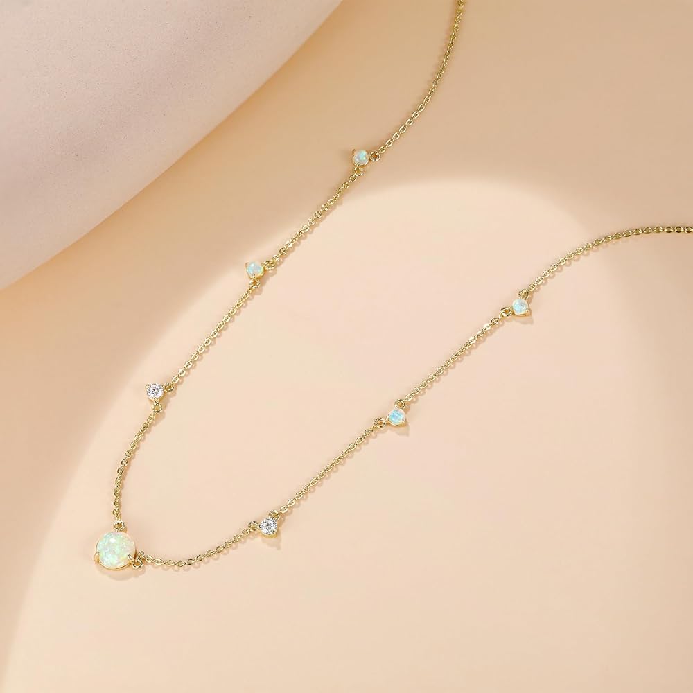 Design: Paved with 5pcs opal and 2pcs simulated round-cut cubic zirconia station necklace is very exquisite. Making the necklace pendant more luxury and elegant, looks charming brilliance from all angles
