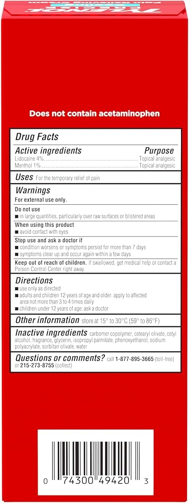 Get targeted pain relief with Tylenol Precise Nighttime Pain Relieving Cream. This topical pain relief cream absorbs rapidly, is non-sticky, and doesn't leave a residue, letting you prepare for a restful night of relief from aches and pains. It includes a massaging rollerball applicator for precise and mess-free use. The dual sensation cream is formulated with 4% Camphor and 1.25% Menthol, so it cools on contact and gradually warms up to help soothe and relieve pain while you sleep. It also contains a calming scent with soothing notes of lavender, cucumber, and sandalwood to help you relax. This nighttime topical analgesic cream penetrates to the pain receptor nerves to relieve minor joint and muscle pains, including back, shoulders, legs, hips, knees, and more. It is indicated for adults and children over the age of 12. To use, apply to the affected area no more than 3 to 4 times a day. Help relieve minor aches and pains every night with Tylenol.