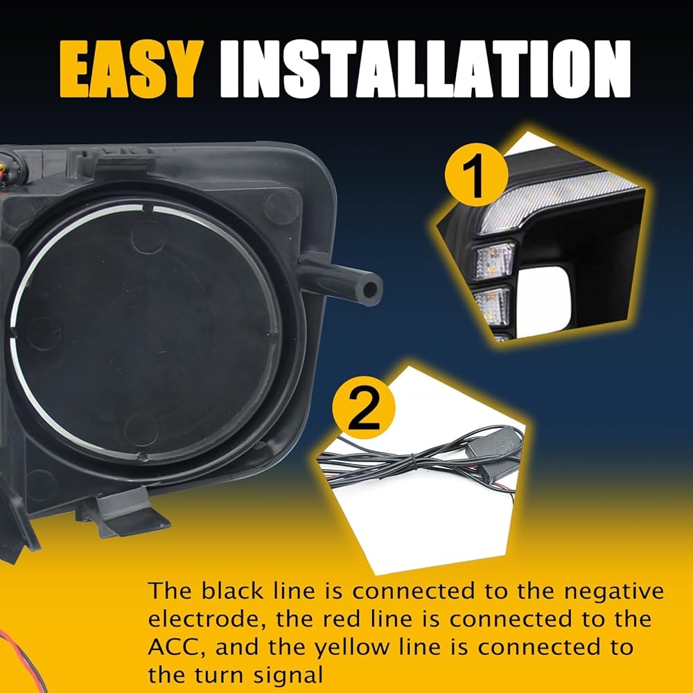 【Easy to Install】:The black line is connected to the negative electrode, the red line is connected to the ACC, and the yellow line is connected to the turn signal.