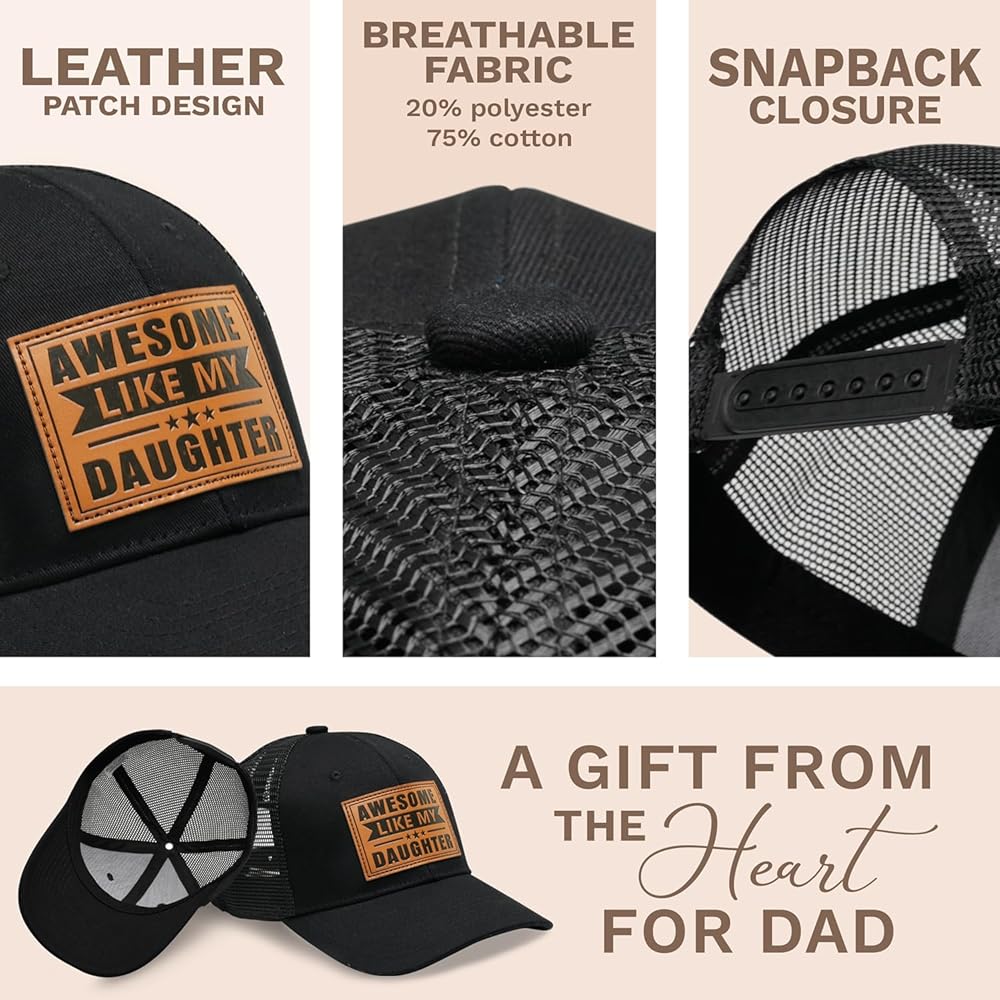 PREMIUM FABRIC FOR STYLE - Crafted with a durable 75% cotton, 20% polyester and a breathable mesh back, this hat keeps Dad cool and comfortable all day long. Perfectly balancing softness and airflow, it's designed to stay fresh under the sun - ideal for outdoor adventures, weekend outings, or simply relaxing in the backyard