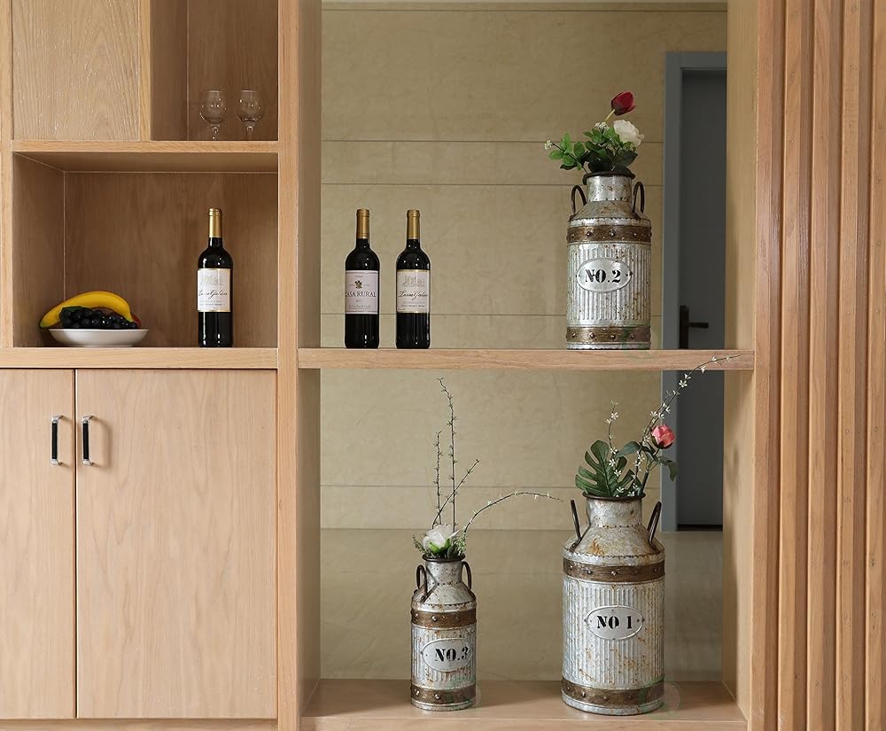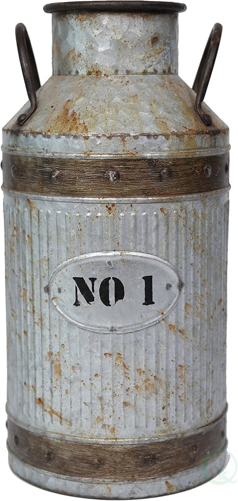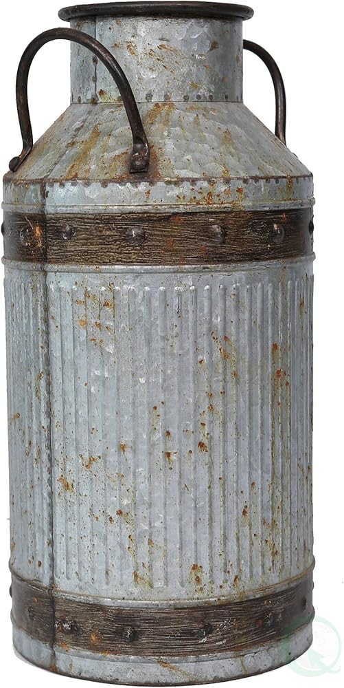 The galvanized metal rustic milk can designed to look like an old fashioned milk can. It's made of galvanized metal with a rusty finish, to complete the antique look. Fill it up with flowers for a one-of-a-kind garden planter, or display it as to add a rustic country touch to your home & garden decor.