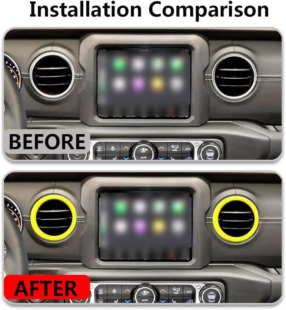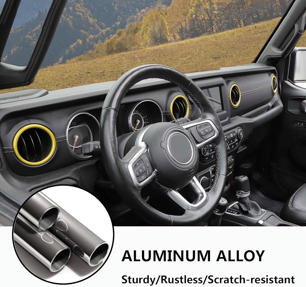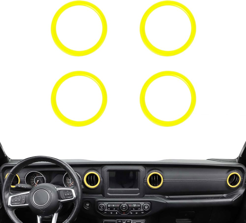 4 PCS Air Conditioning Outlet Trim Cover Aluminum Alloy AC Vent Decoration Ring Center Console Dashboard Interior Accessories Compatible with Wrangler JL 2018-2023 Gladiator JT 2020-2023 (Yellow)