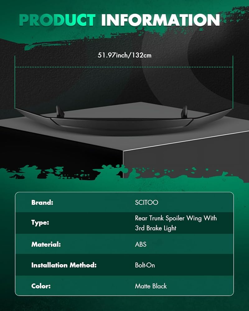 BUY WITH CONFIDENCE - Package Included: 1 * Rear Trunk Lid Spoiler Wing W/LED Light(Includes all hardware as shown). If there is any question about our products or your purchasing, welcome to contact us by Amazon message.
