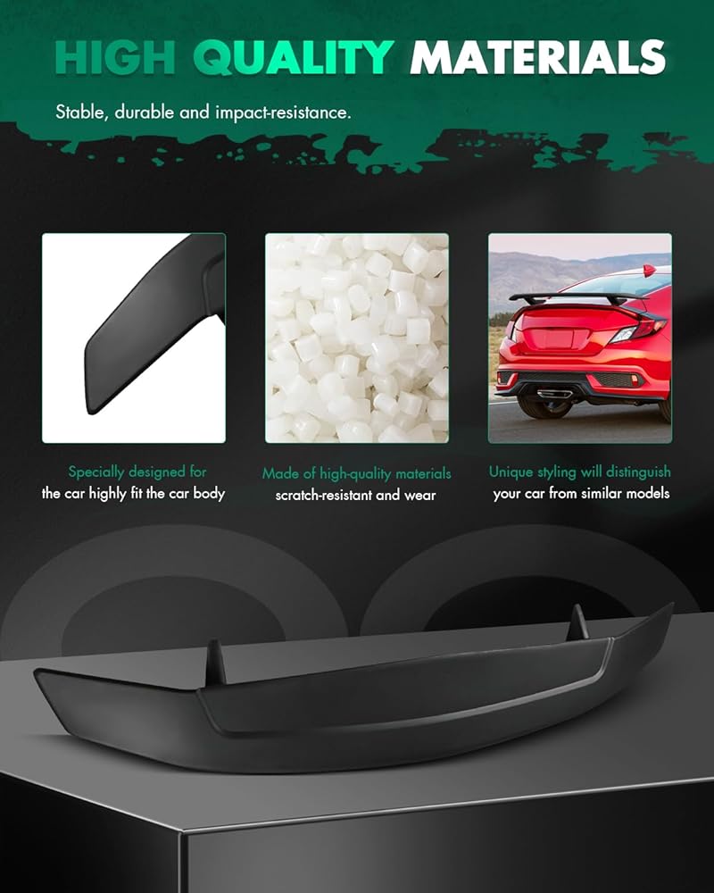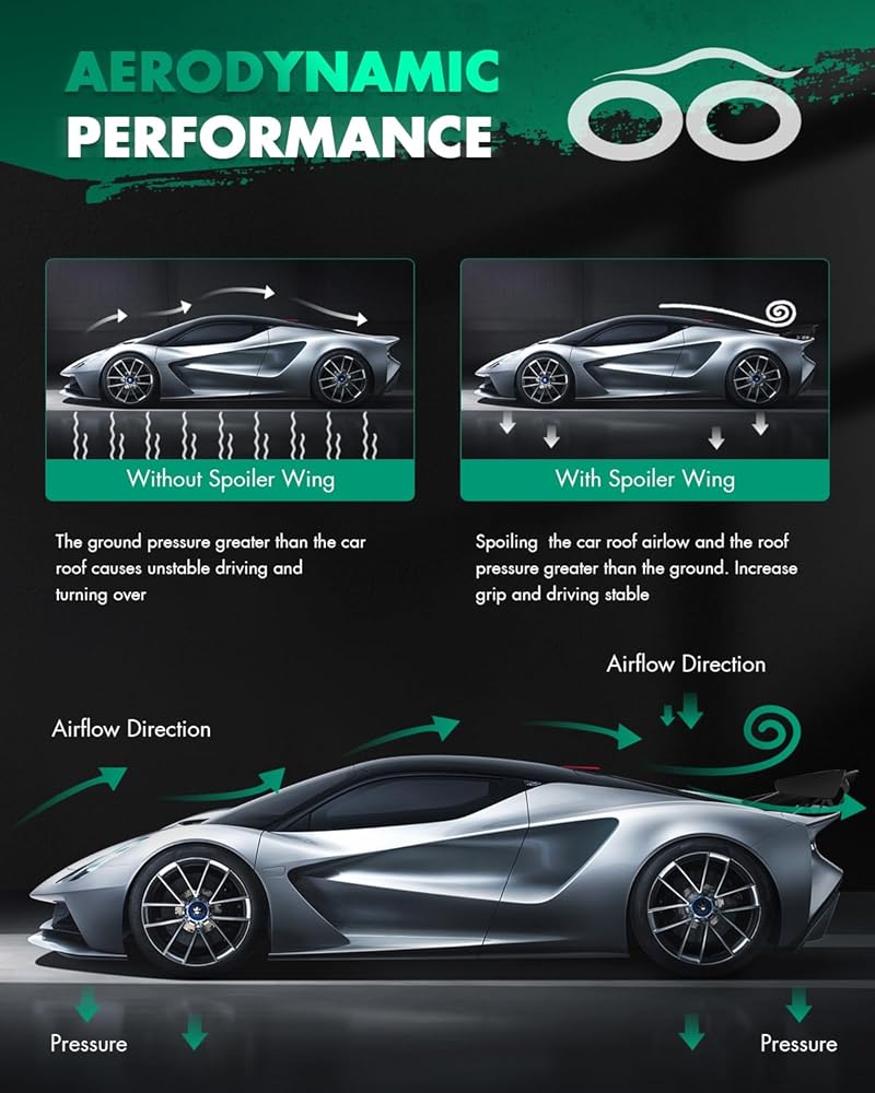 EXQUISITE DESIGN - The wing spoiler improves the overall handling and durability. By aerodynamics, the rear spoiler can offer an additional downforce to the car and reduce drag coefficient so as to promote motion and improve stability, bringing you a better driving experience.