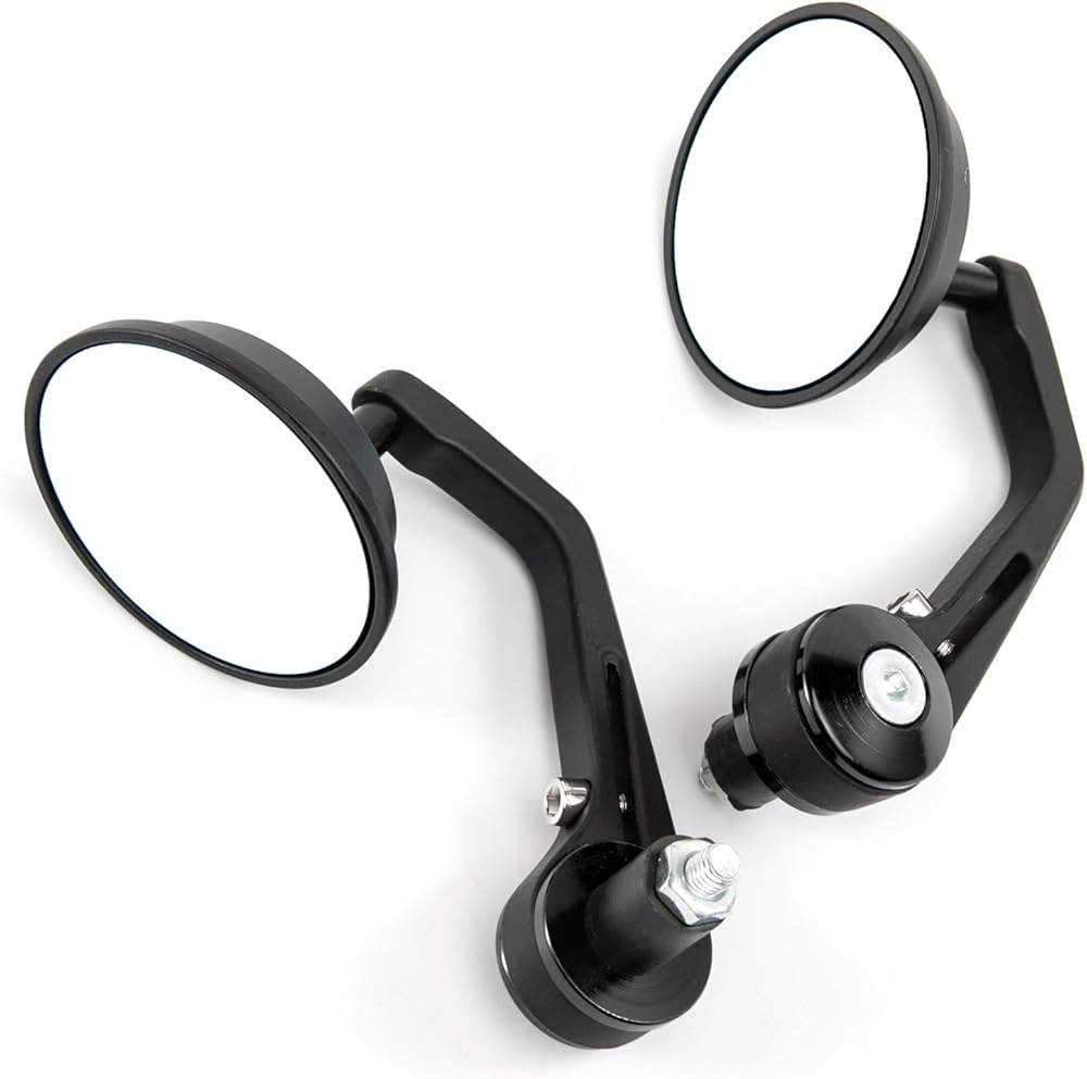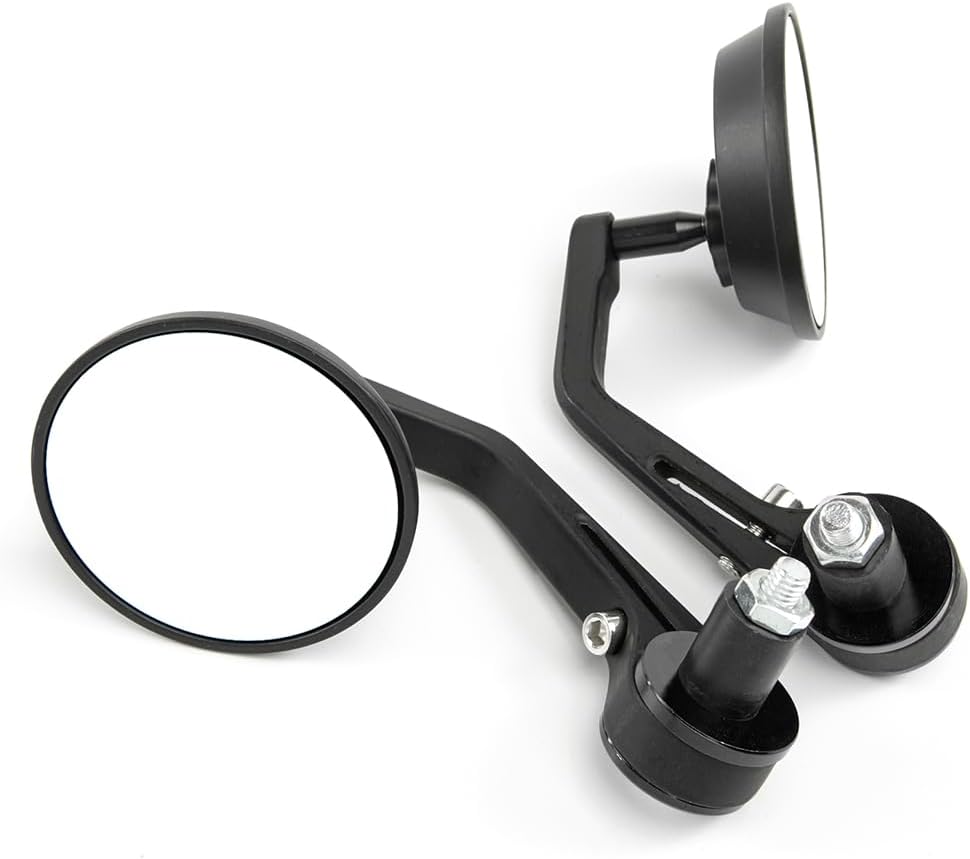 【Easy to Install】The motorcycle handlebar side mirrors come with complete assembly accessories, Not need any install instructions, can be mounted on the top or below the handlebar.