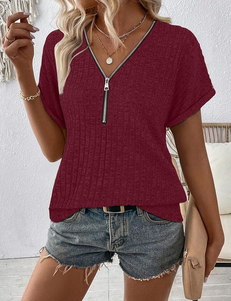 【ZIPPER】Ladies Top is designed with a unique front zipper closure,allowing for easy on and off. which is more suitable for spring and summer office wear and casual match, showcasing mature charm and embellishing your neck and chest lines.