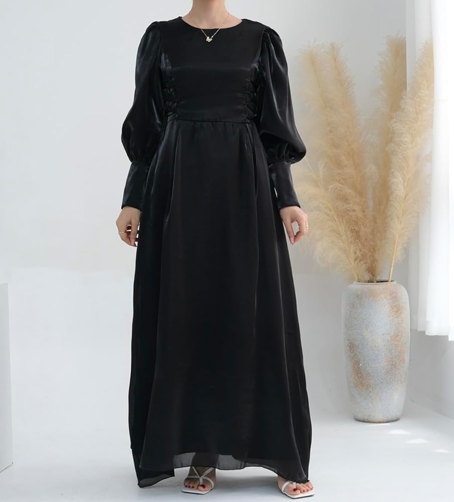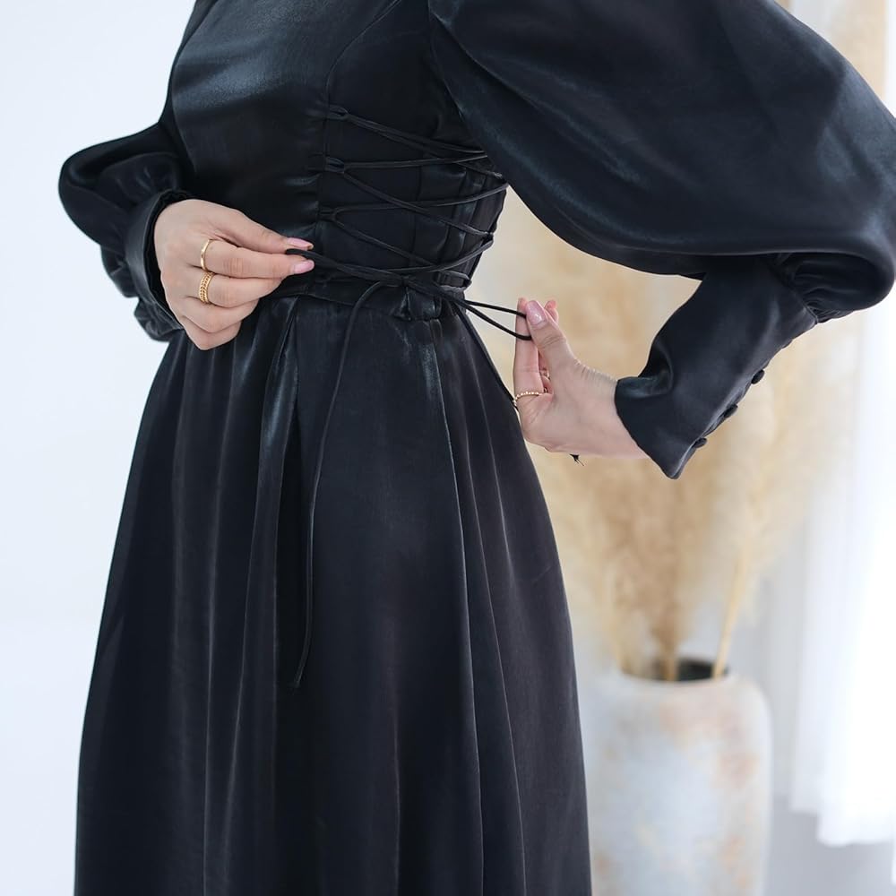 This elegant evening gown is the epitome of sophistication and grace. Crafted from shimmering organza fabric, it exudes a luxurious feel and drapes beautifully over the body. The corset details on the sides allow for an adjustable, flattering fit that accentuates the waistline. The long, puffed sleeves and scoop neckline add a touch of romance, while the floor-length skirt creates a regal silhouette. Whether attending a wedding, prom, graduation, a party, or any other special occasion, this gown will make you feel like royalty. With its timeless design and premium materials, it's a versatile investment piece that can be dressed up or down to suit any occasion. Available in a range of sizes to ensure a perfect fit.