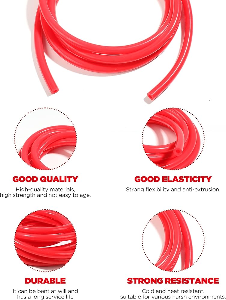[Cuttable] This silicone vacuum hose is 10 feet long and 1/4 inch inside diameter, which is enough to meet your needs. You can cut it into appropriate size according to your needs. It is flexible, flexible and easy to store. When your old vacuum hose is damaged and weathered by heat, it will be a very practical replacement accessory.
