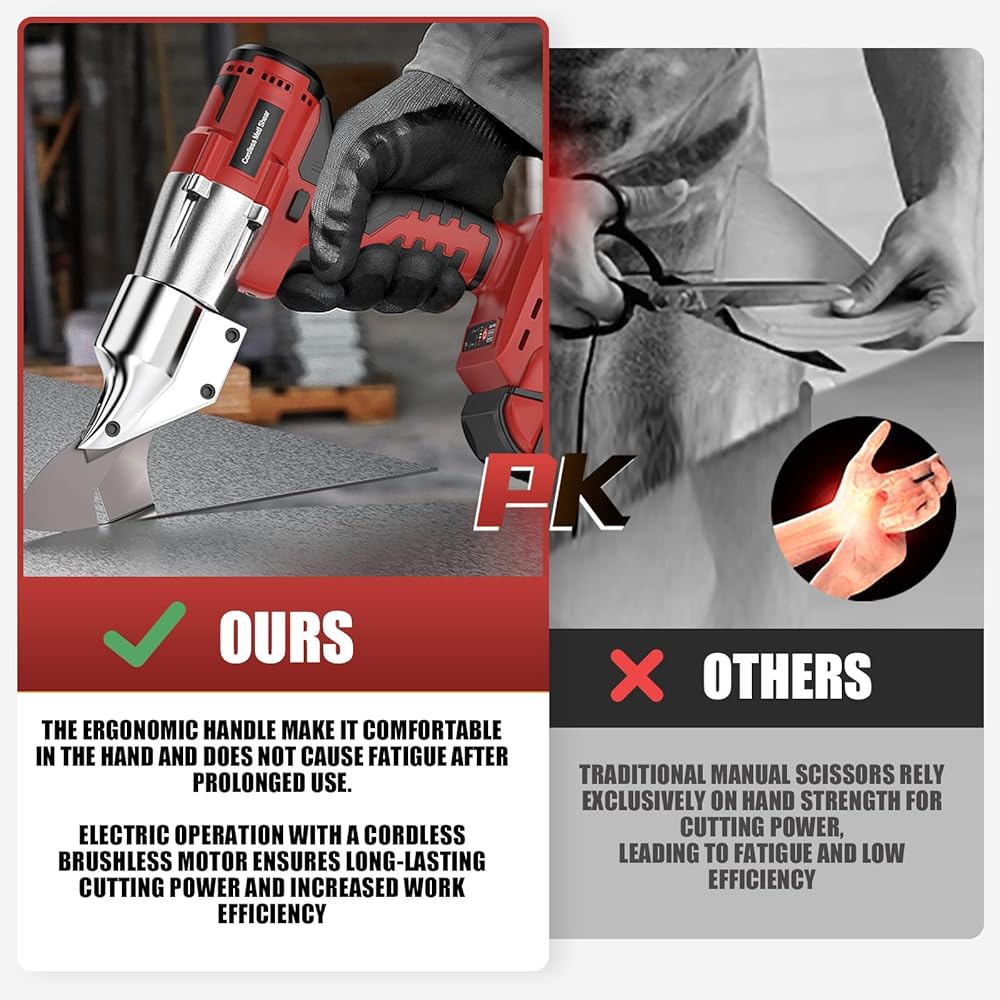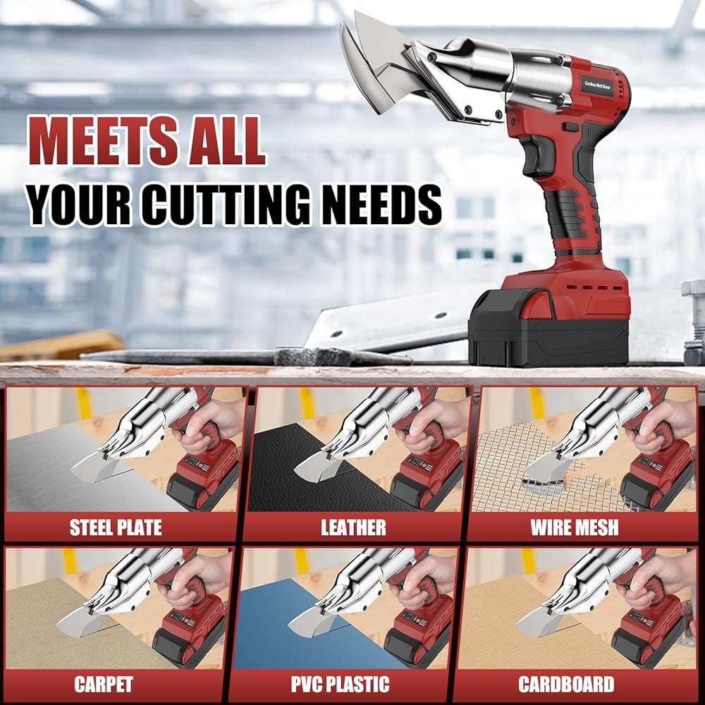 Maneuverable and Multi-Functional Design: The cordless sheet metal cutter are versatile, ideal for cutting metal roofing, wire mesh, and flashing. With exceptional maneuverability and a multi-functional design, they adapt to various situations. The adjustable cutter head enables comfortable cuts from different angles, facilitating precise cutting of straight lines, curves, circles, and irregular shapes efficiently. Maximum shear 20 gauge stainless steel and 18 gauge metal plate; Max torque: 300N.m