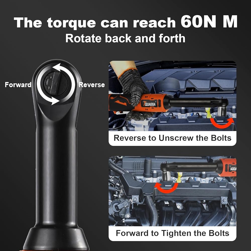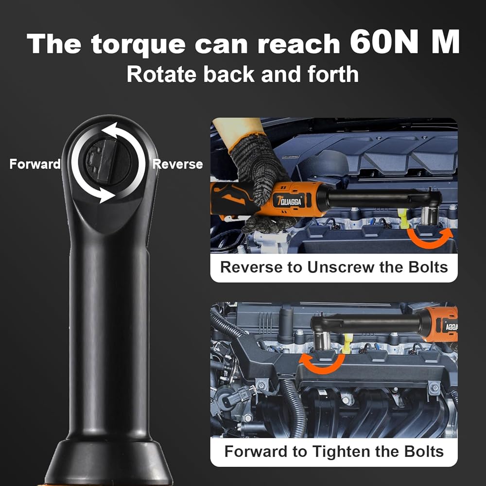 Smart Forward/Reverse Control: The TQUAGGA power ratchet wrench features a quick switch for instant torque direction changes. Ideal for quick transitions between tightening engine bolts or extracting rusted fasteners in tight spaces.