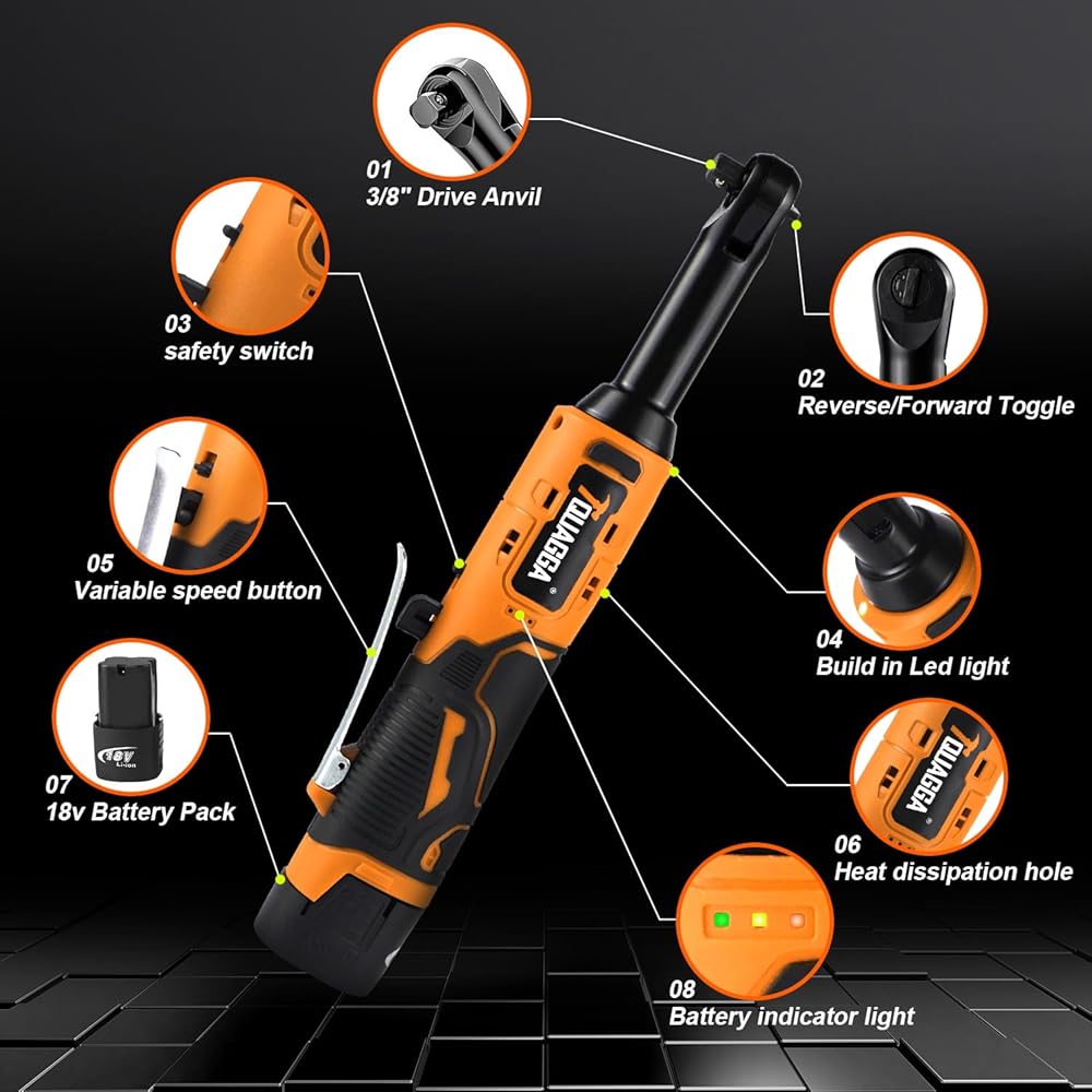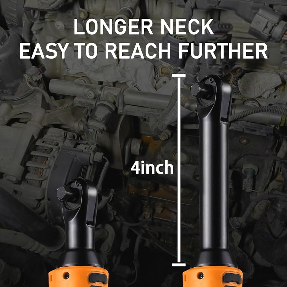 Powerful Electric Ratchet Wrench: 3/8 inch Cordless ratchet wrench set designed with 3/8” drive for tight spaces, and 45 ft-lbs torque for automotive repairs. When the required torque exceeds the electric-only torque capacity of the electric ratchet wrench, you can first manually loosen it and then quickly remove it using the electric mode.