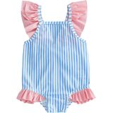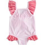Toddler Baby Girl Swimweart Set Striped Sleeveless Ruffle Swimsuit Bow Headband Sun Hat 3 Piece Outfit for Beach Pool