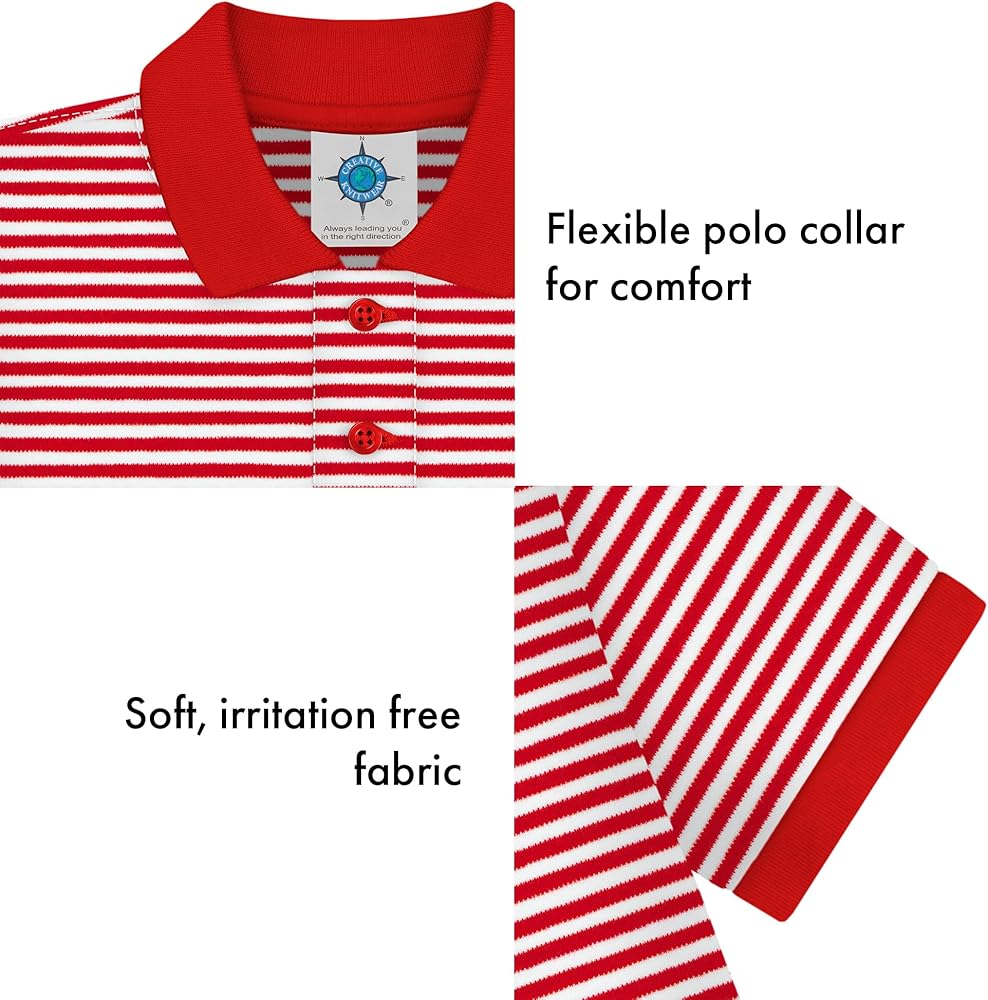 Get your little sports fan ready for the football season with this striped polo t-shirt by the creative geniuses at Creative Knitwear. Made of 100% super soft, interlocking, cotton fabric, this shirt sports a soft, pointed collar and a double button neckline. Machine wash and tumble dry.
