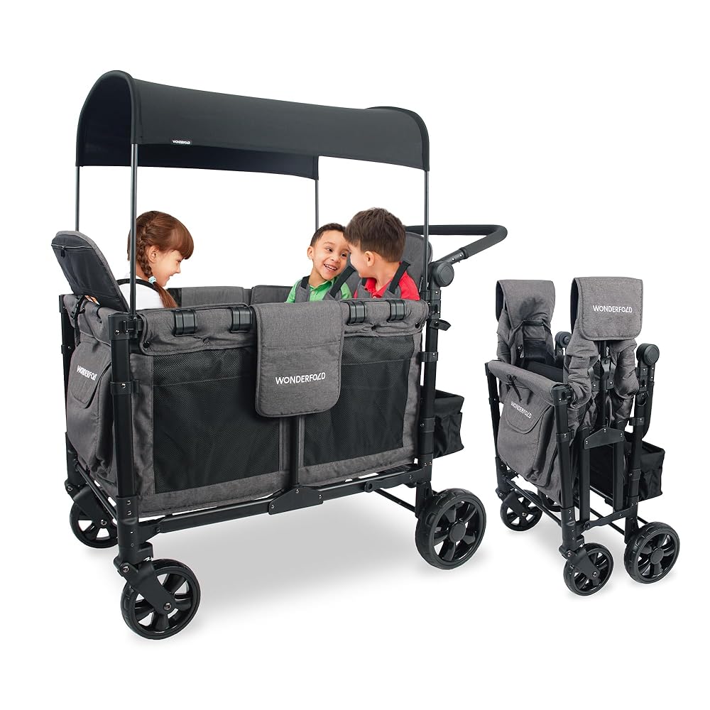 PERFECT BABY & TODDLER STROLLER – Foldable wagon collapses easily for storage and holds up to 4 passengers in removable seats, with five-point adjustable safety harnesses to keep the little ones secure