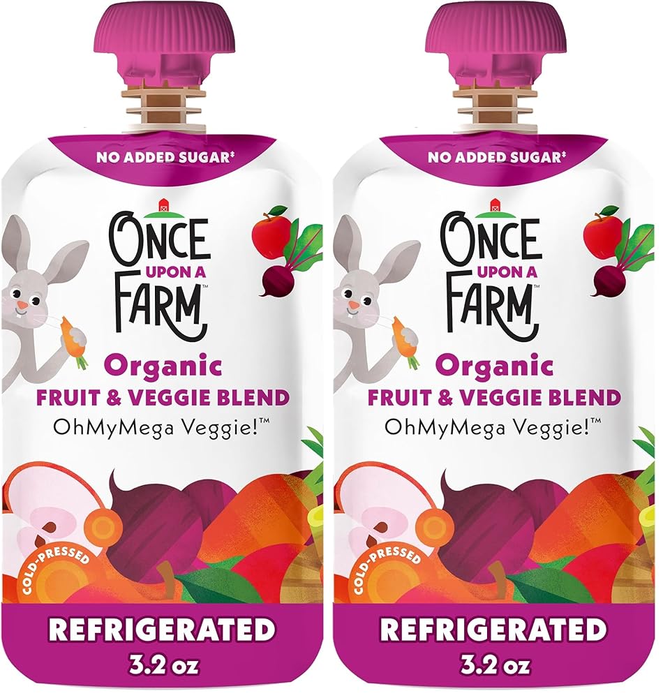 At Once Upon a Farm, a better story starts here. Our organic recipes are crafted with only the best ingredients -- whole fruits and veggies that are picked, blended and cold-pressed to lock in nutrients, taste and texture. Each of our non-GMO, non-dairy blends and smoothies have no added sugar, and are free from artificial flavors, colors and preservatives – just simple, real, nutrient-rich snacks your family will love.