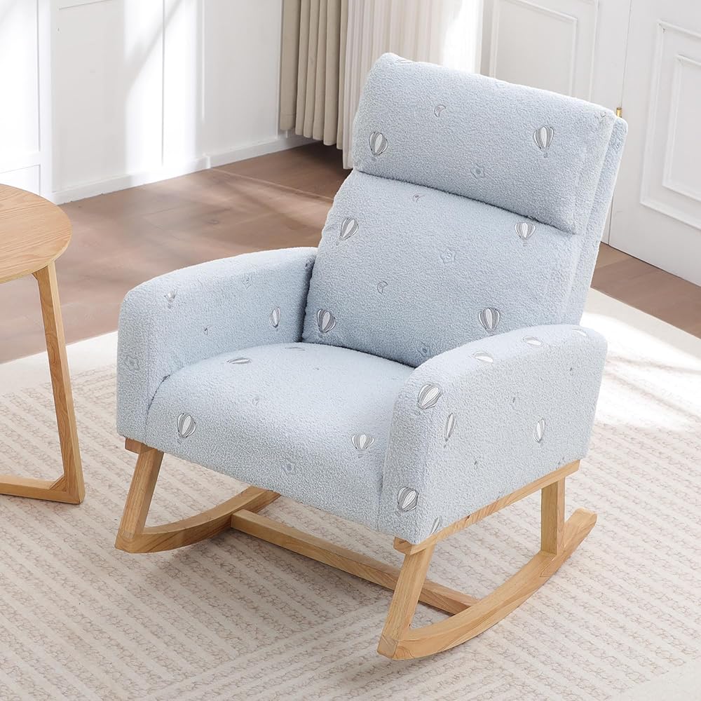 【Teddy Velvet Fabric】Upholstered with durable,soft,skin-friendly Teddy fabric that is gentle and non-irritating to the touch.The surface of the nursery rocker chair is breathable and easy to maintain.Durable and won't fade,wrinkle or pill over long periods of use.