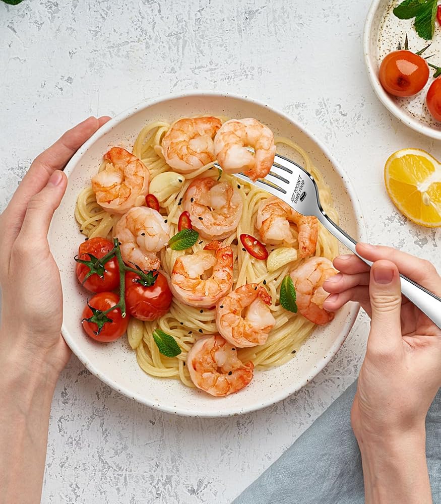 Wide Range of uses:These table forks are ideal for appetizer,salad,dessert,fruit,cake. Also,ideal for salads,pasta,steak,fish,chicken,Macaroni,cheese,pork and other dishes.Perfect for everyday use,hotels,holiday dinners,family dinners,parties,weddings,celebrations and more.