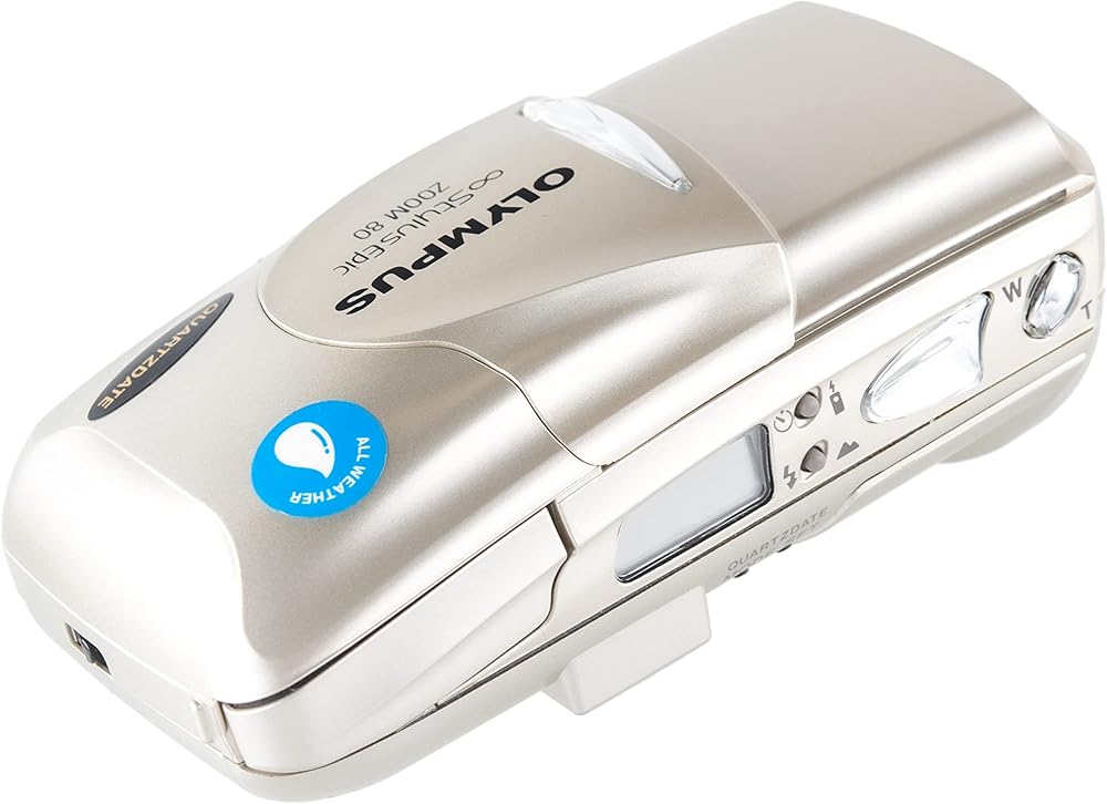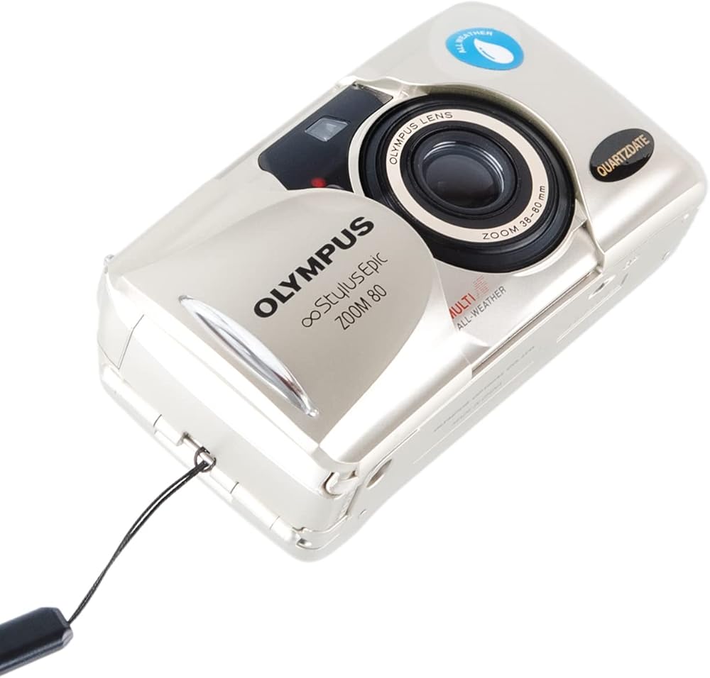 While the Olympus Stylus Epic Zoom 80 is one of the smallest zoom cameras available, it is heavy on styling and great features. Its miniature version of Olympus's signature clamshell sliding case makes it easy to turn the camera on and off, while offering protection against lens scratches. It comes in a good-looking and durable brushed champagne gold case that is splash-proof, so you can shoot pictures in all kinds of weather. The 38-80mm zoom lens is perfect for framing portraits, getting in on the action, and capturing faraway subjects.