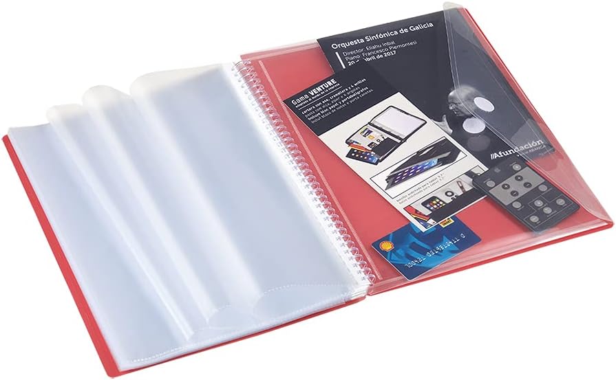 Archivex-Star A4 Folder with 20 Pockets, with spiral made of non-deformable plastic, customisable kangaroo cover, envelope with flap and Velcro and elastic closure. Red