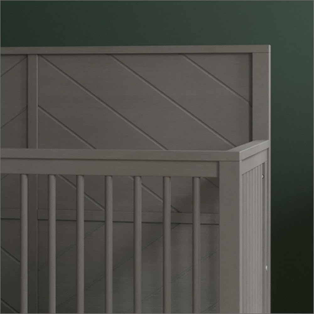 The Child Craft Surrey Hill 3-Piece Nursery Set is available in 2 neutral, non-toxic finishes: Toasted Chestnut and Lunar Gray.