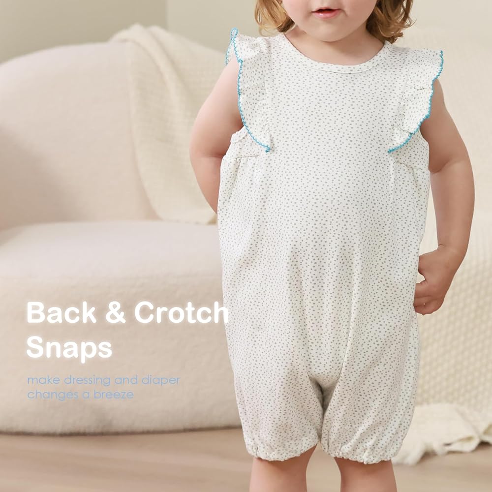 Comfortable Fit for 0-24 Months:Designed for newborns and infants up to 24 months, this baby girl summer romper offers a snug yet stretchy fit for easy movement and diaper changes