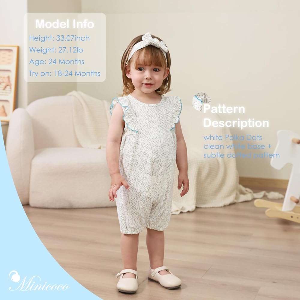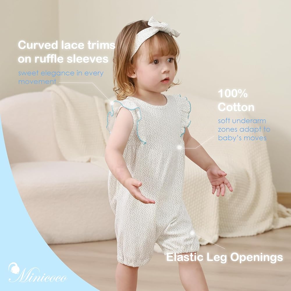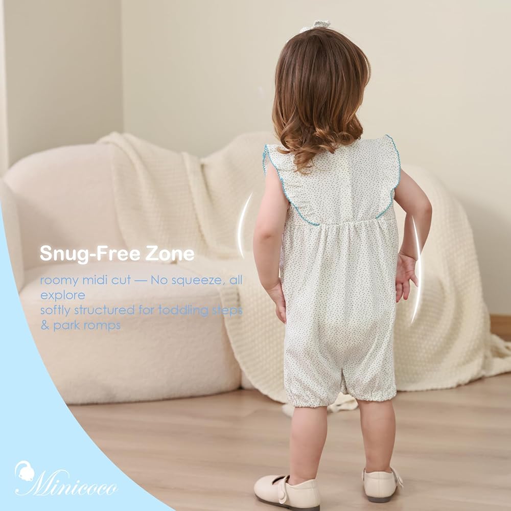 100% Cotton & Breathable Fabric:This minicoco baby girl romper is made of 100% soft cotton, ensuring gentle touch and excellent air circulation to keep your little one cool and comfortable all day