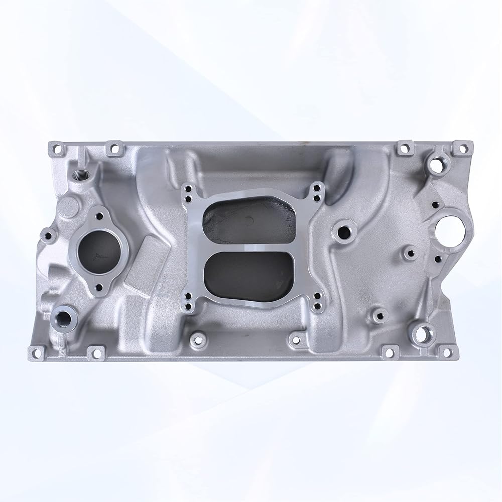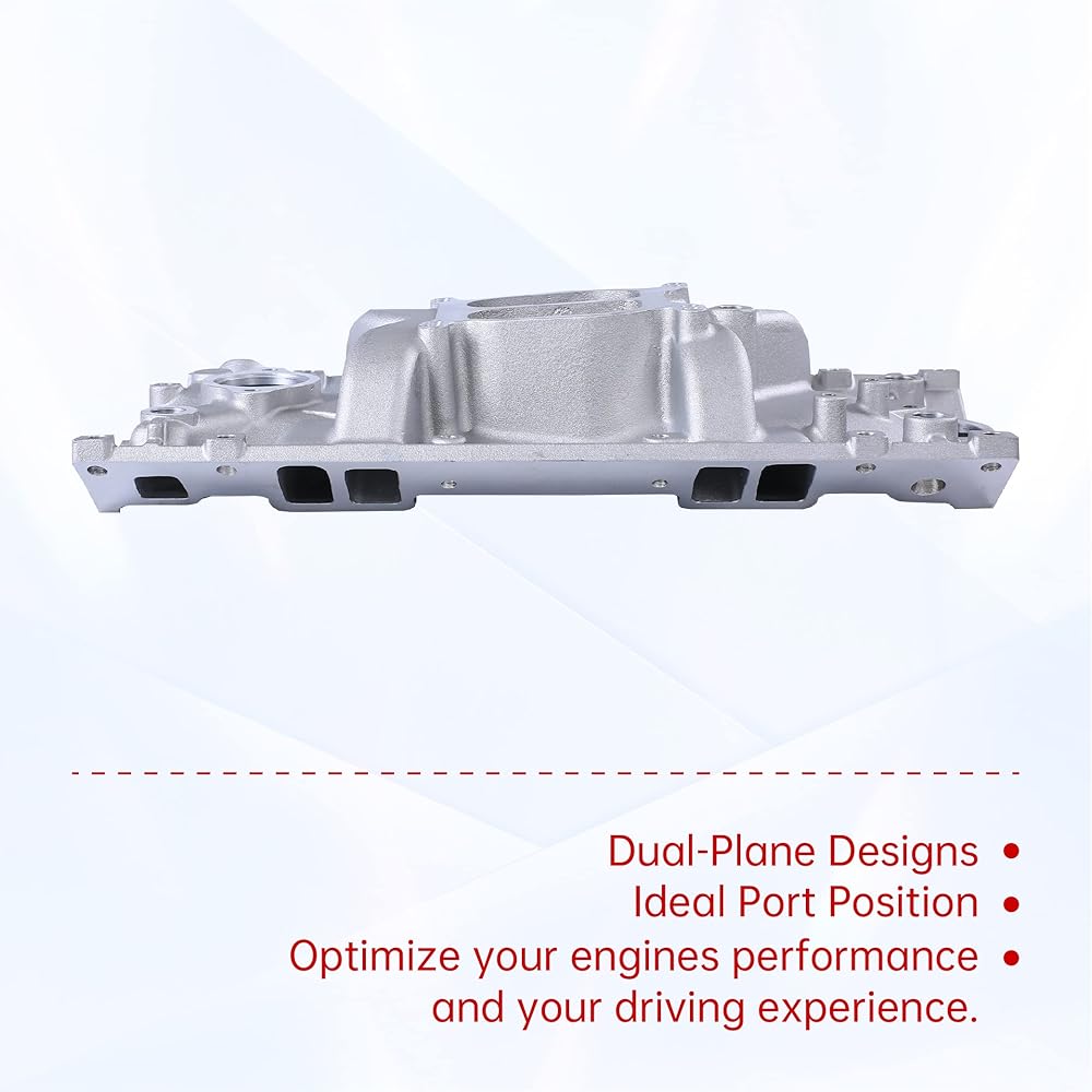 【Advantage】Intake manifold comes with dual-plane designs, providing power over a wide RPM range, from idle to 5500 RPM. Dual distributor hold-down provisions for extra protection against distributor rotation, Four corner water outlets.