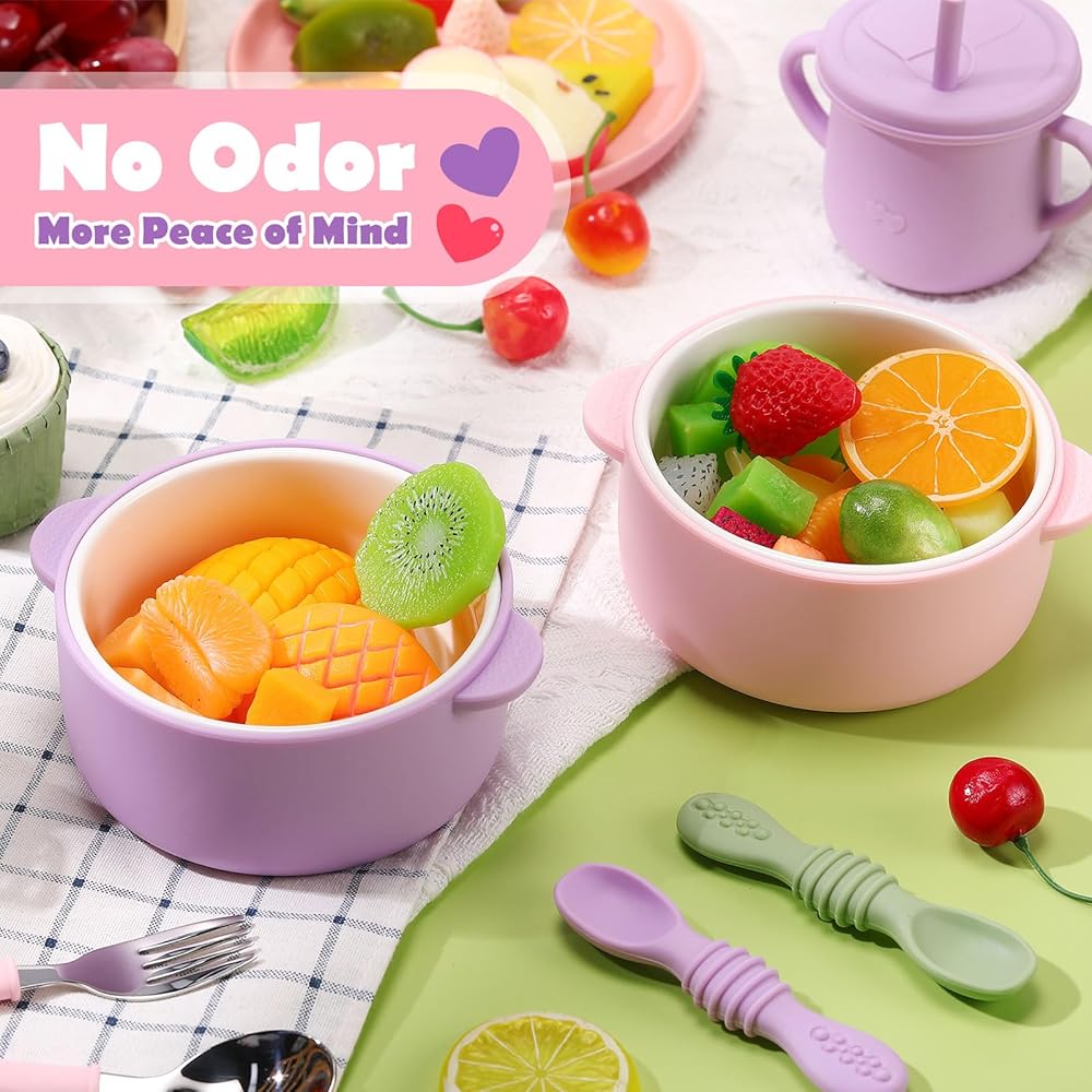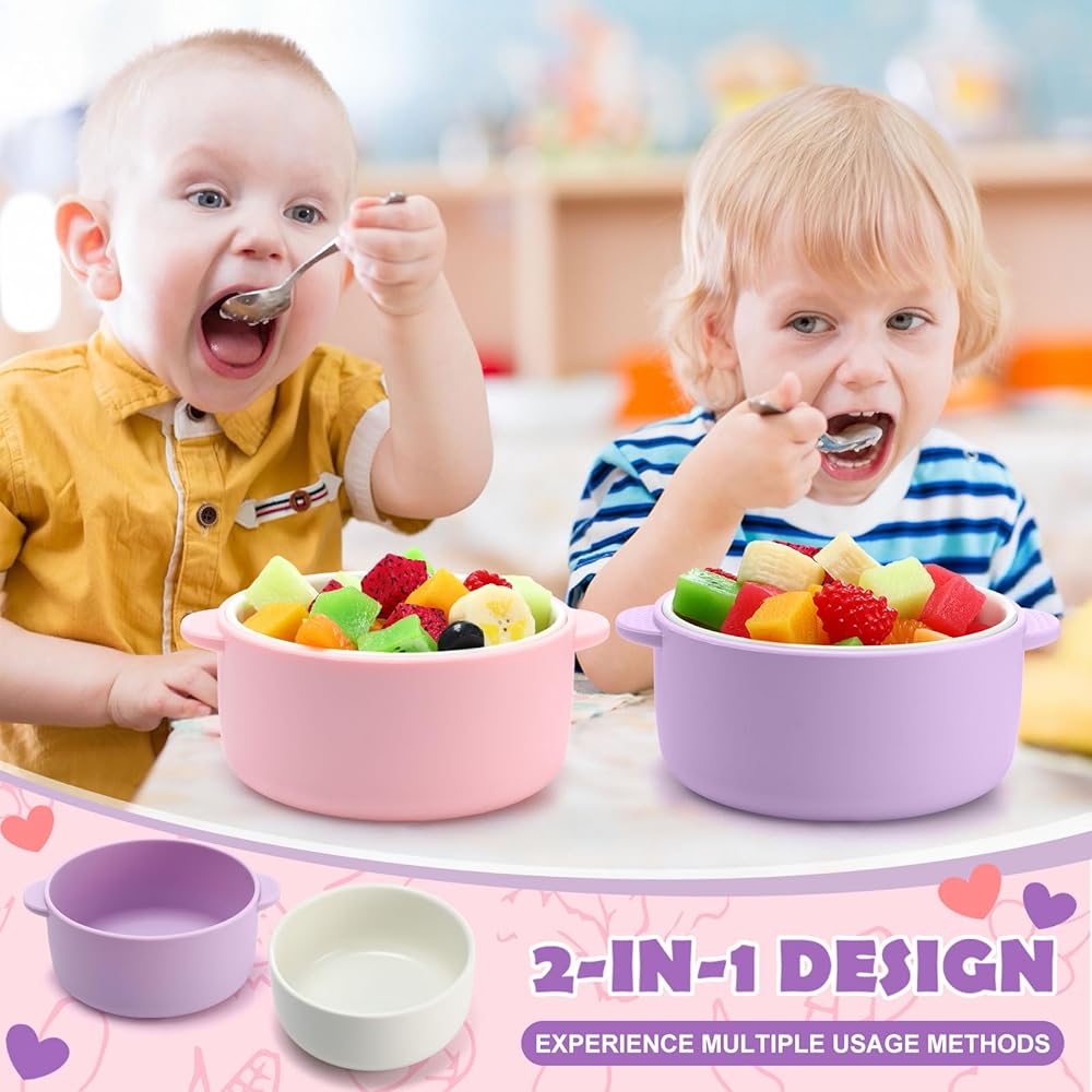 Our kids soup bowls are designed with children in mind. The soft silicone outer shell is safe for little hands and ensures a comfortable grip. The rounded edges and smooth surface of the plates ensure safety, reducing the risk of cuts or scratches. The bright colors and playful design make mealtime more fun for children and encourage independent eating.